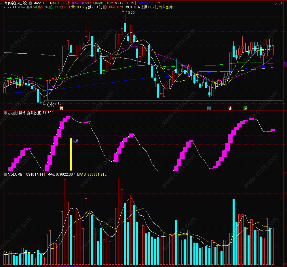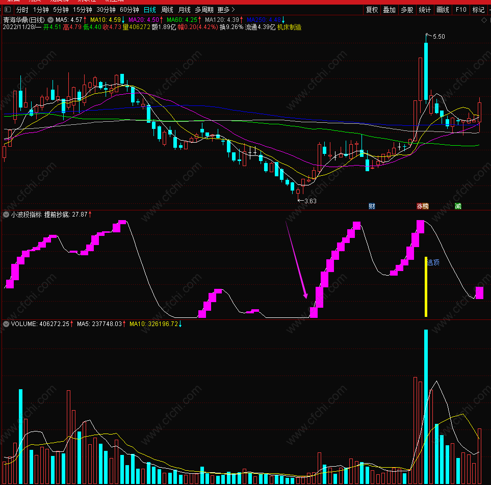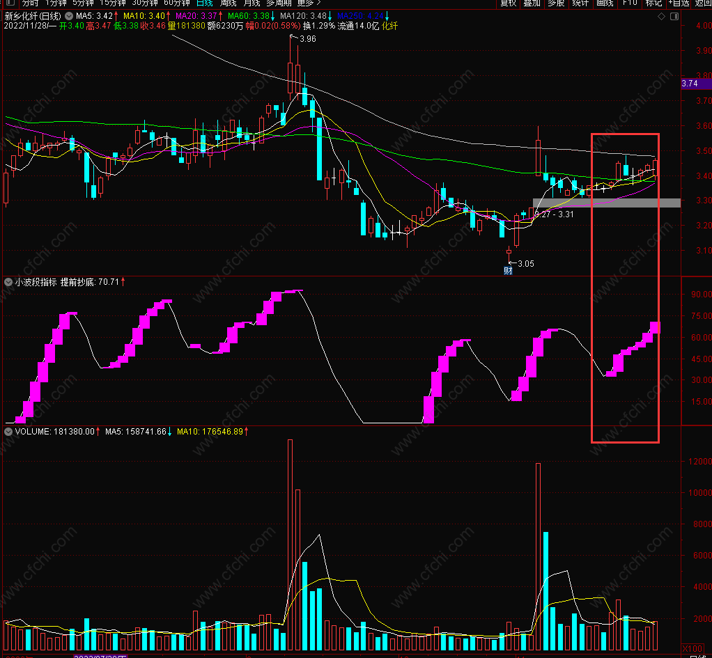 1、当这个股票指标出现粉色波段信号的时候,注意成交量,成交量要量价结合量升价涨。