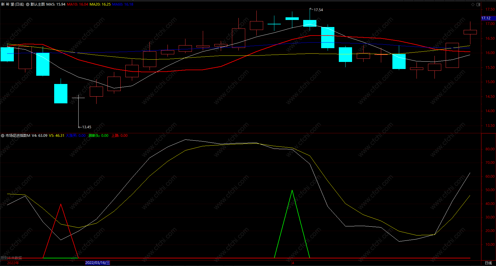 通达信市场促进指数MFI副图 判定路的方向公式 源码