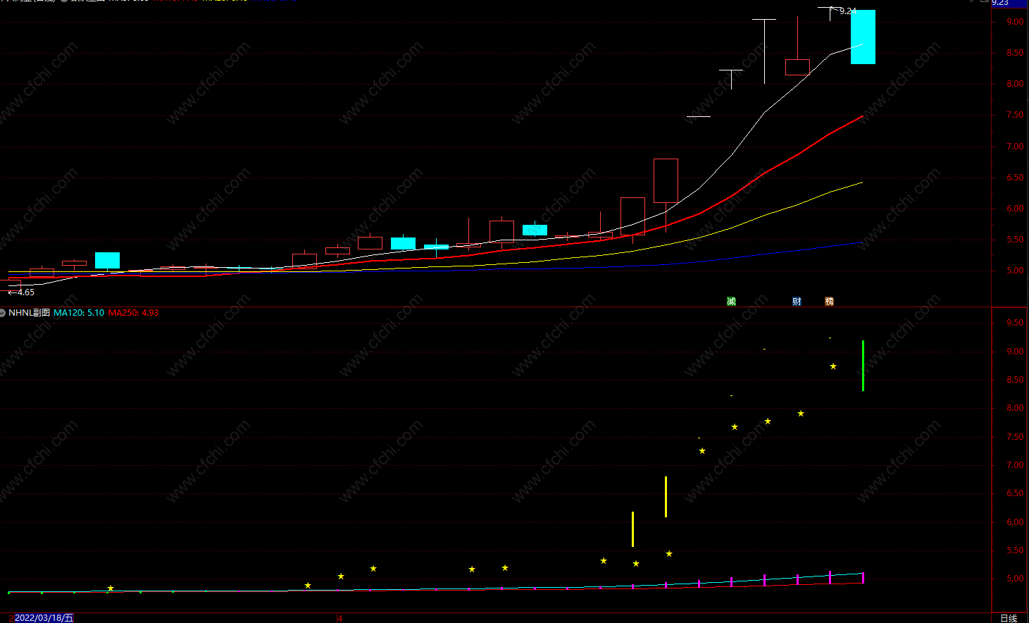 DRAWTEXT(H=HHV(H,500),L*0.97,'★'),coloryellow;