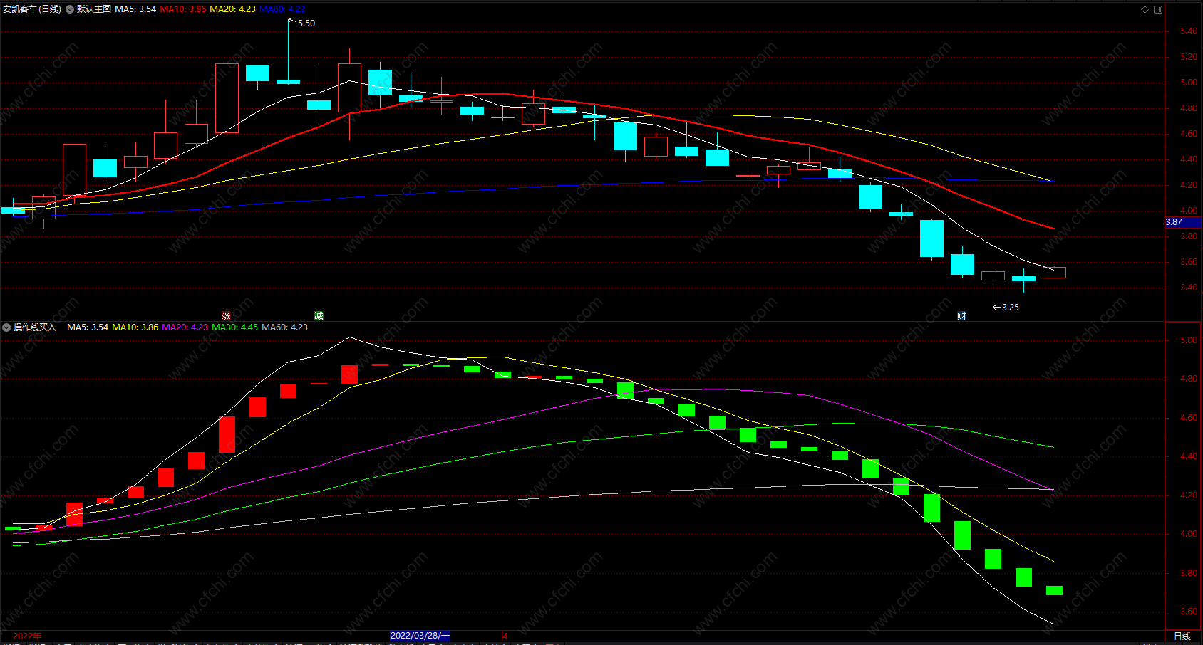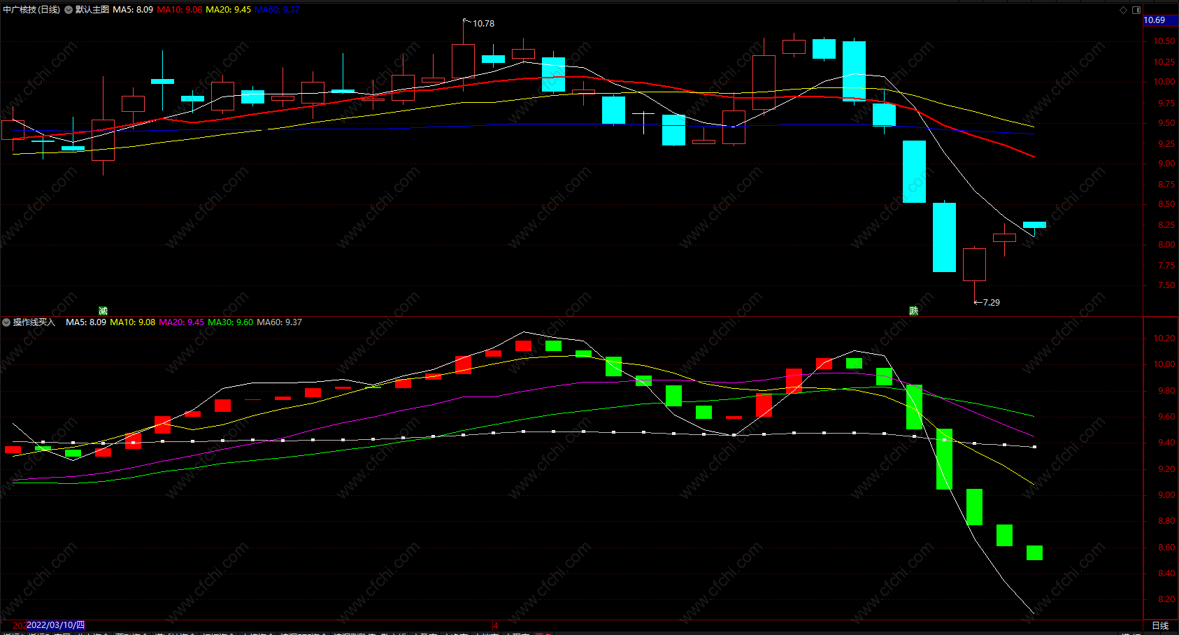 具体使用时,看五日线的走势,当五日线与十日线金叉时考虑买入