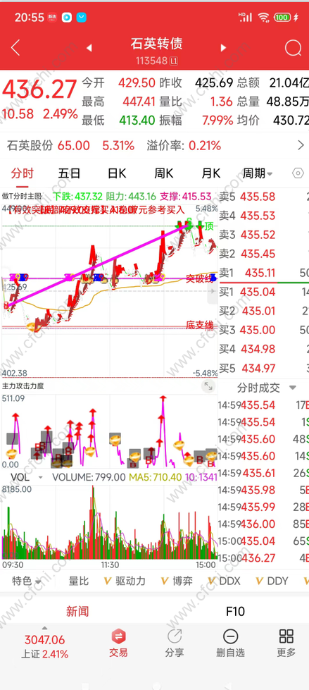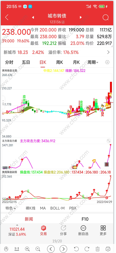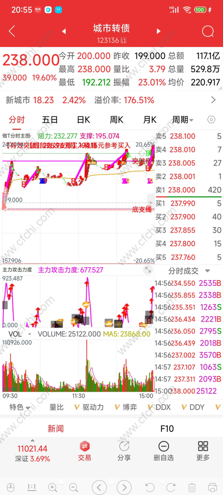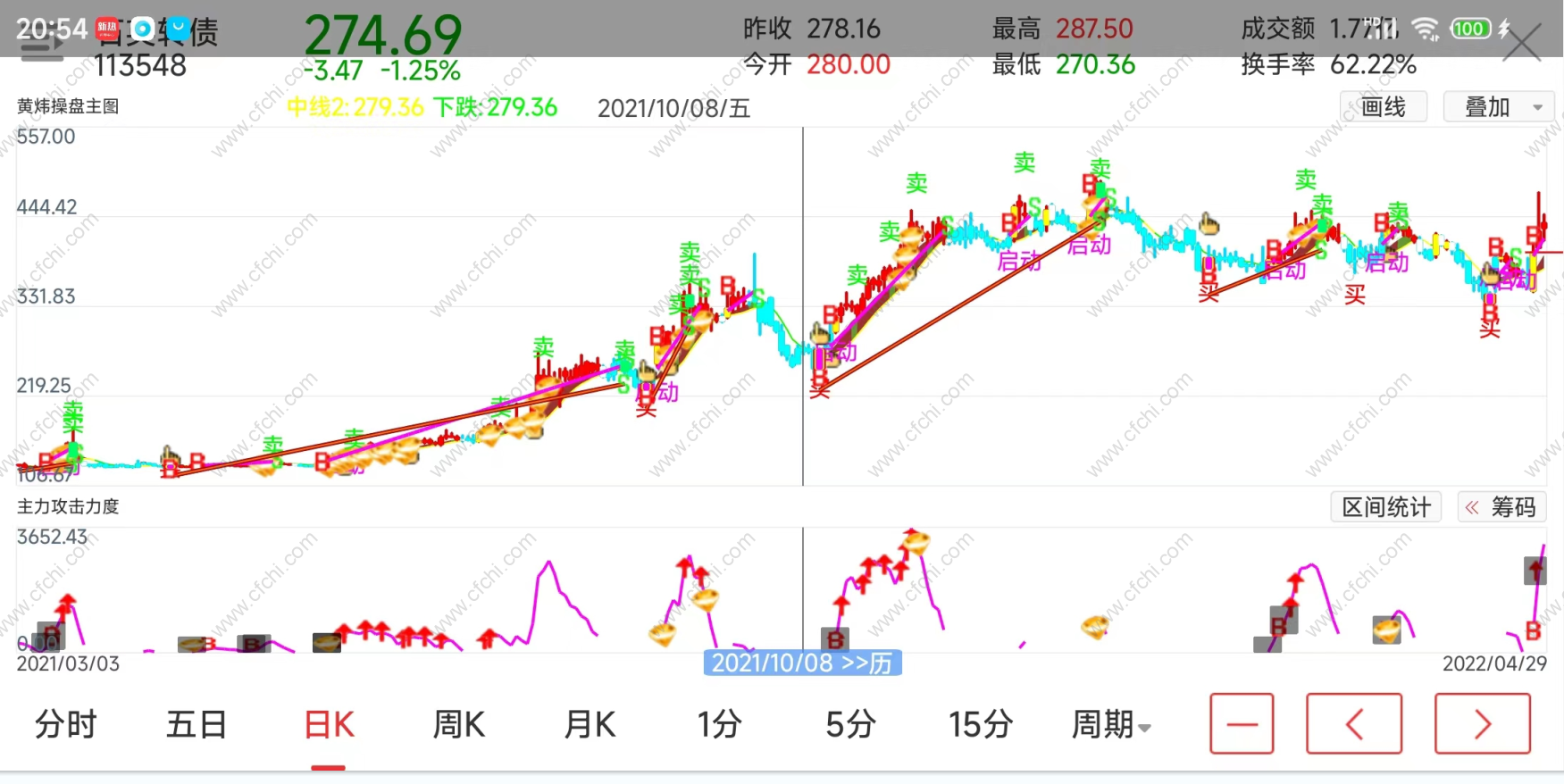 (手机版主力攻击力度黄炜副图,电脑也可用,做可转债当天T+0买卖特别有效,可用于分时副图和日K线等副图)