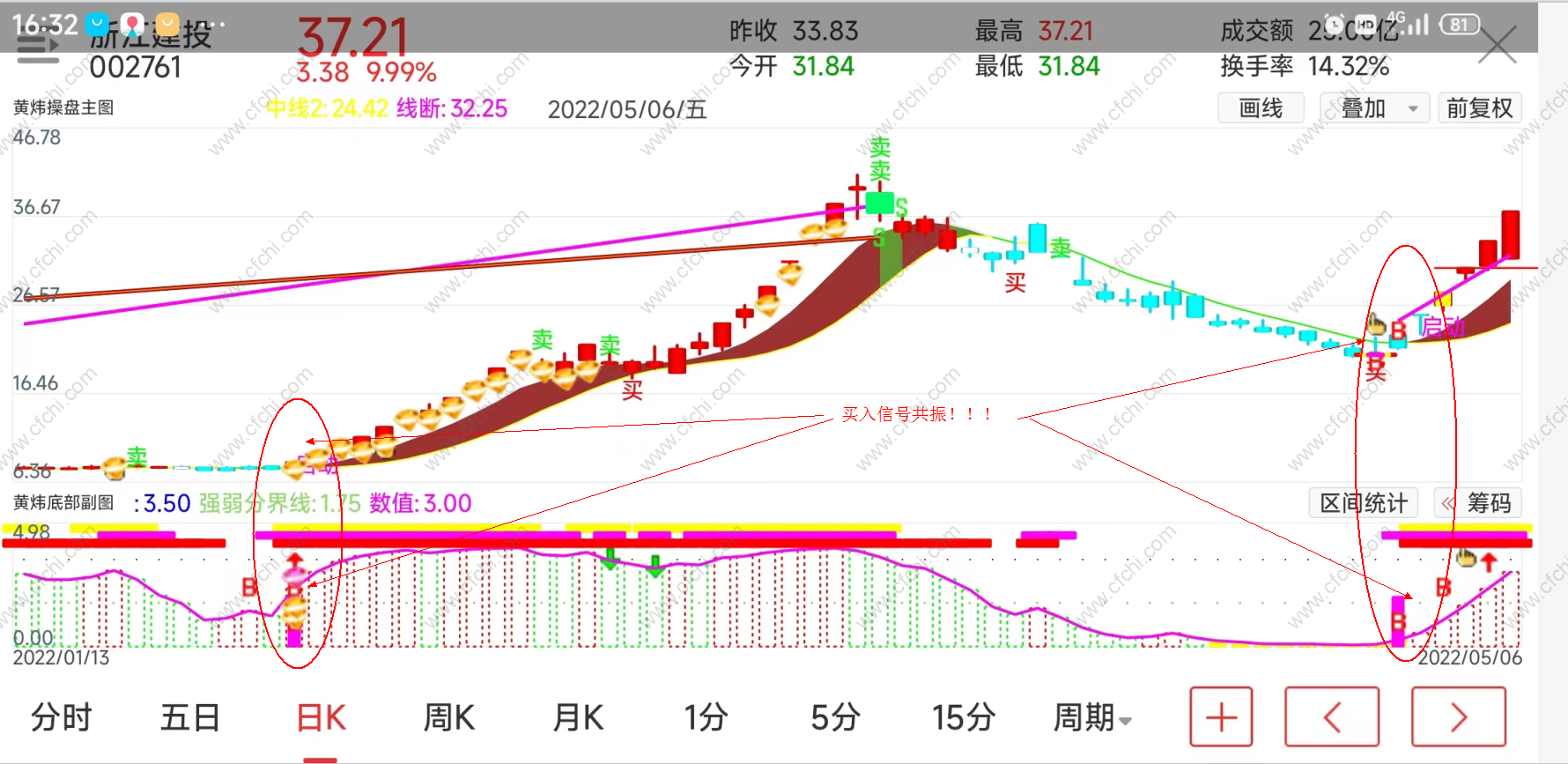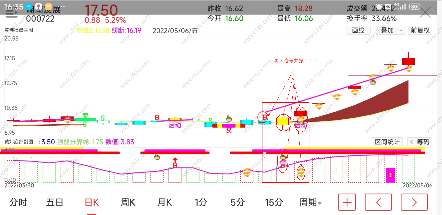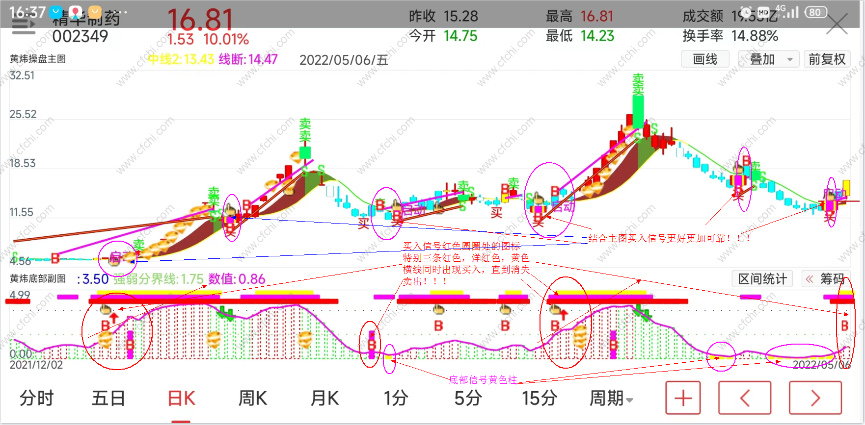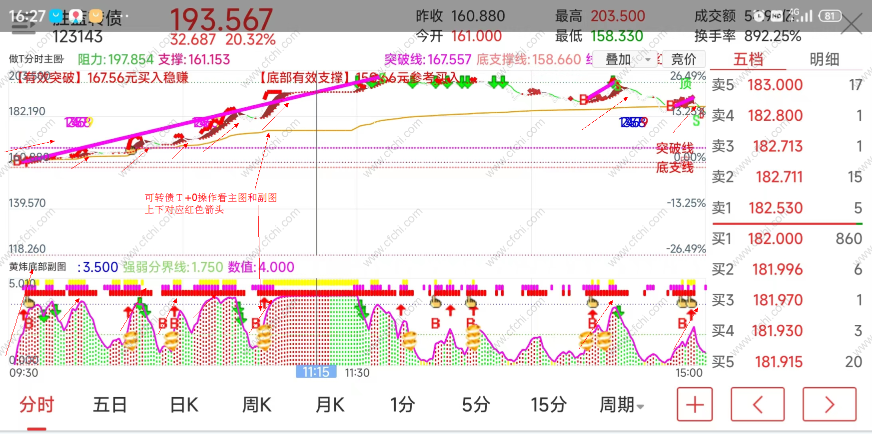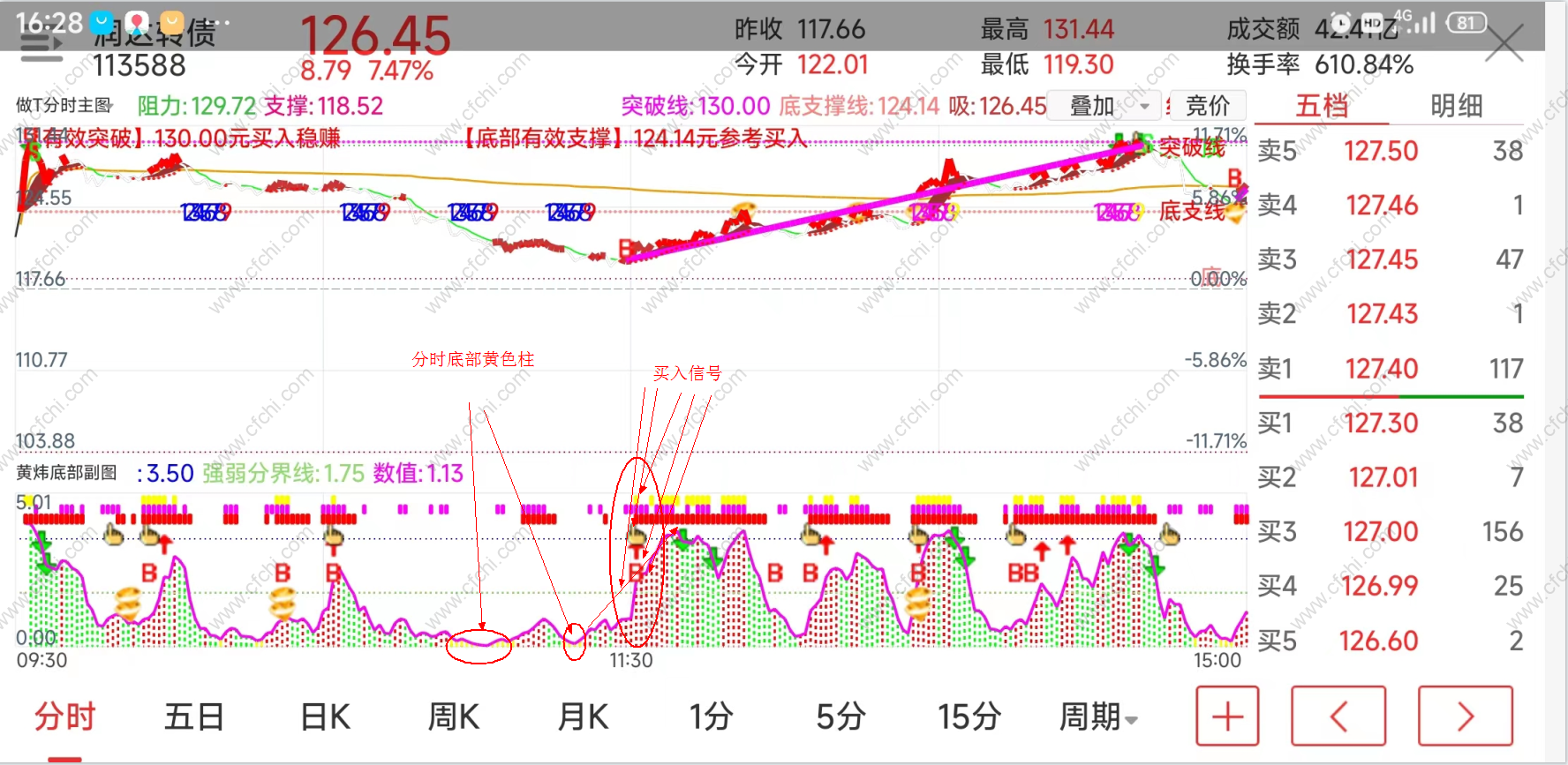 手机版和电脑版黄炜底部副图,可用于分时副图和日K线等副图,可用于股票,可转债,期货等做T+0,短线,中线.