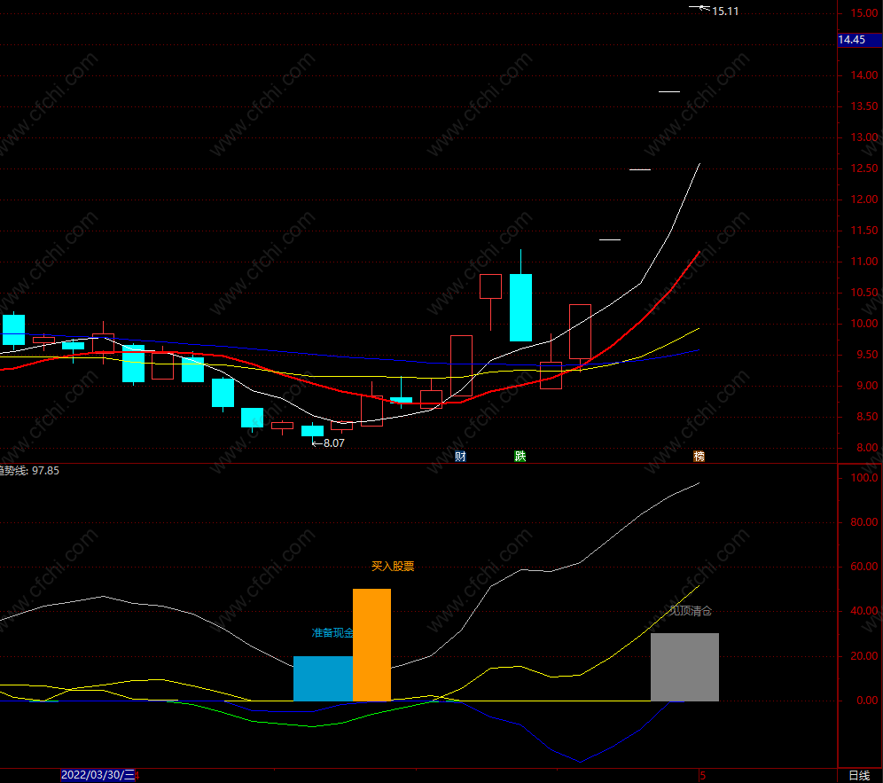 准备现金: STICKLINE(趋势线<=13,0,20,5,0),COLORCC9900;
