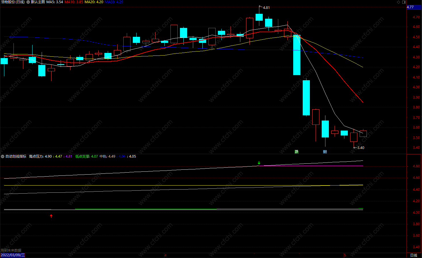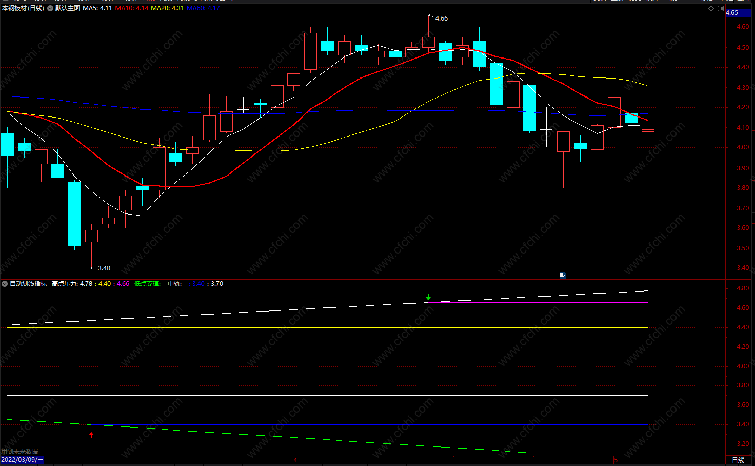 (自动划线指标 股票支撑线和压力线指标副图 源码)
