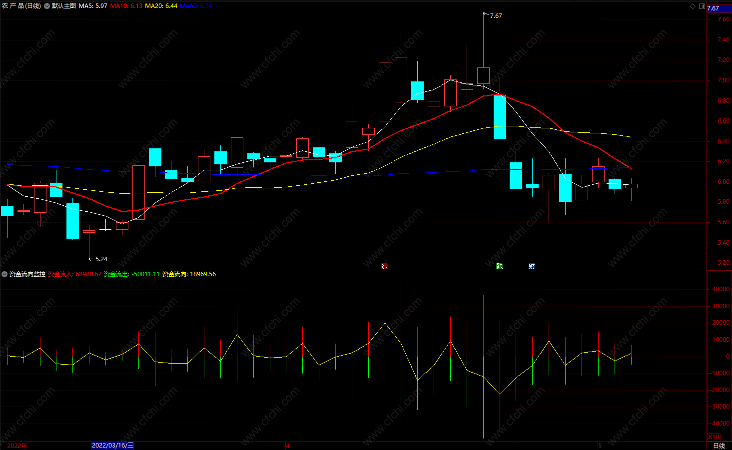 资金流向:资金流入+资金流出,coloryellow;