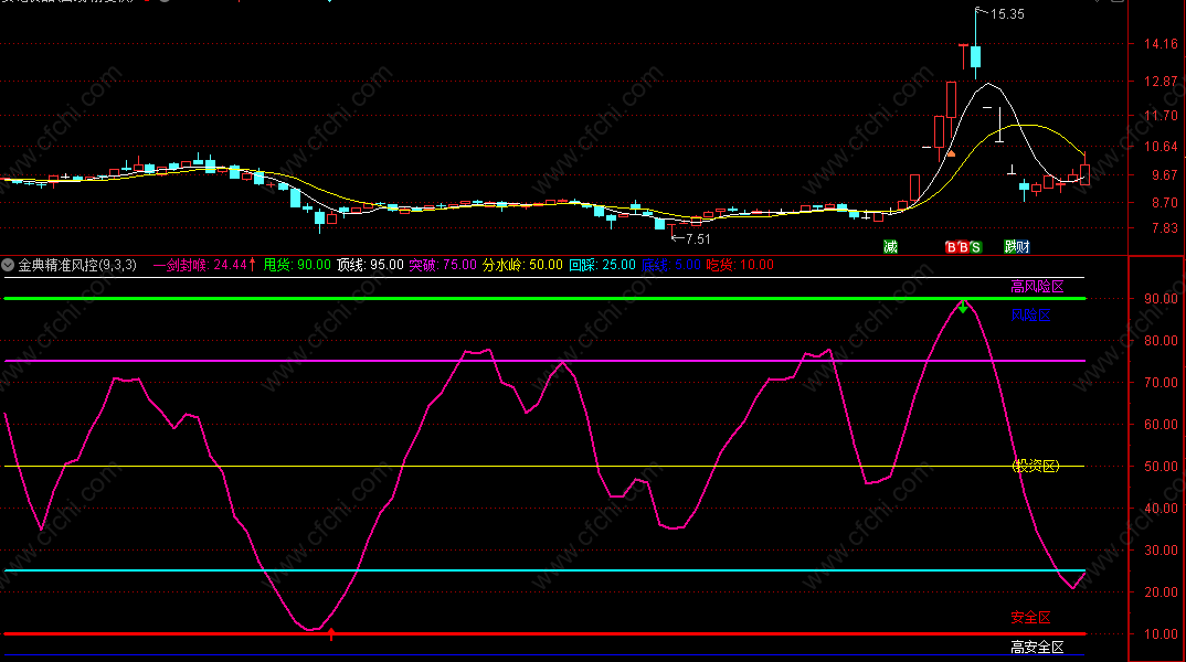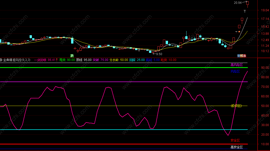 财富池指标公式网(www.cfchi.com)提醒您:指标公式是通过数学逻辑角度编写而来,仅是股票分析环节中的一个辅助工具,对股票选股效率和分析便捷上起到一定的作用,股市是具有不确定性和不可预测性的,请正常对待和使用指标公式!
