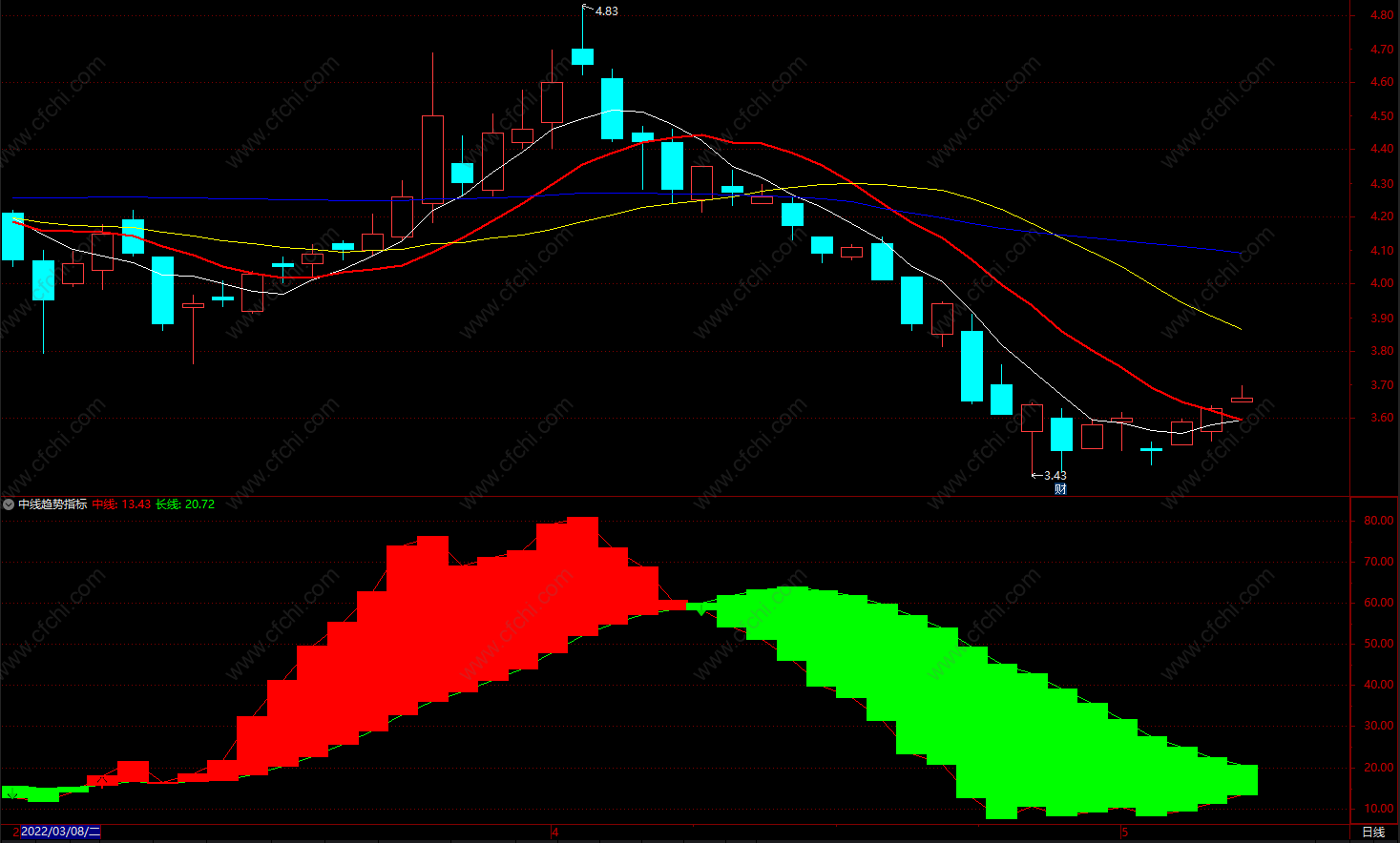 (通达信中线趋势指标 波段红买绿卖无未来 副图 源码 )