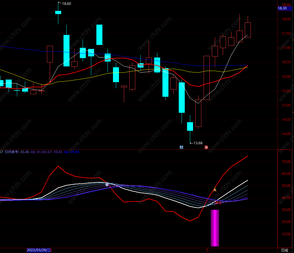 红线在上持股(红线)、回档不破洗盘(白线)、红线下穿减仓(蓝线)等,可依据目前所处的位置为投资交易提供参考。