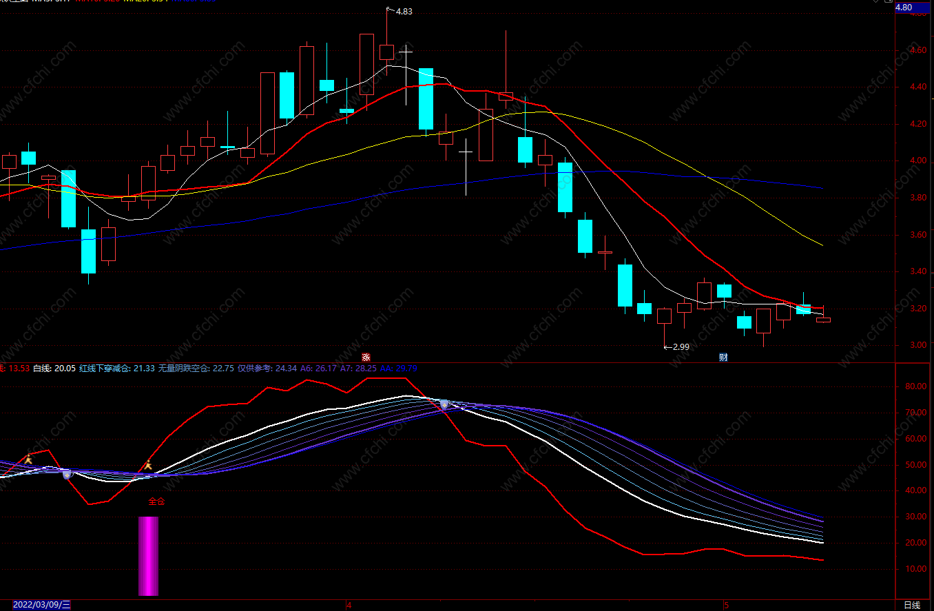 财富池指标公式网(www.cfchi.com)提醒您:指标公式是通过数学逻辑角度编写而来,仅是股票分析环节中的一个辅助工具,对股票选股效率和分析便捷上起到一定的作用,股市是具有不确定性和不可预测性的,请正常对待和使用指标公式!