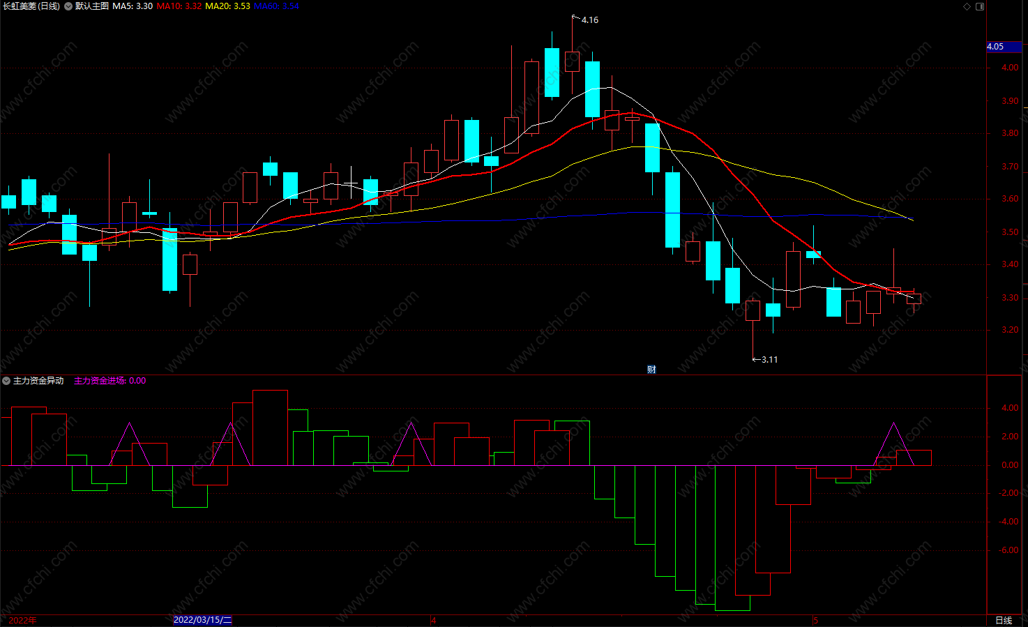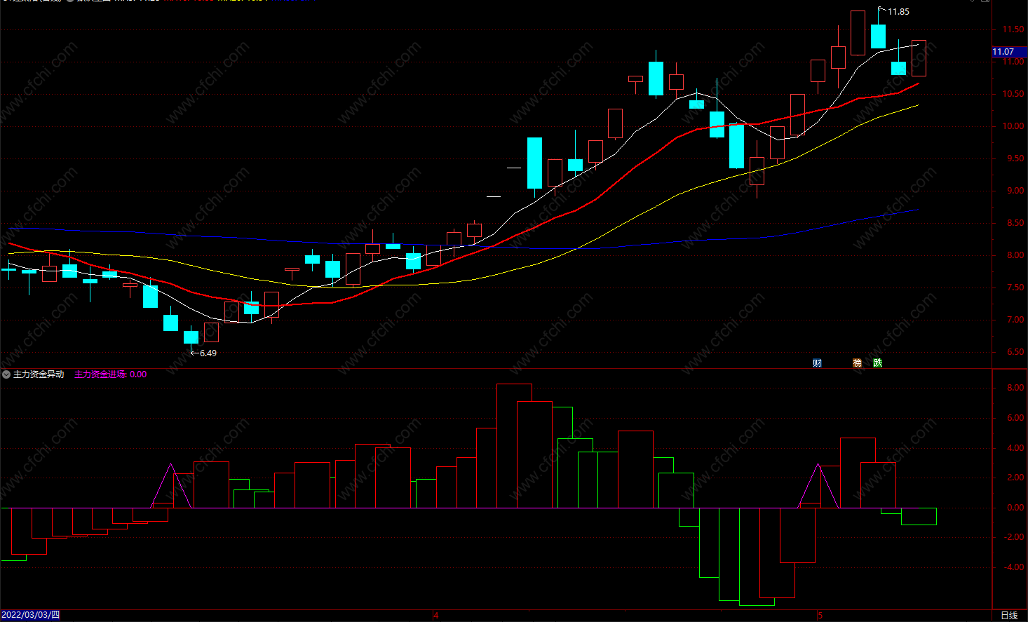 主力资金进场:IF(CROSS(AA,BB),3,0),LINETHICK1,COLORFF00FF;