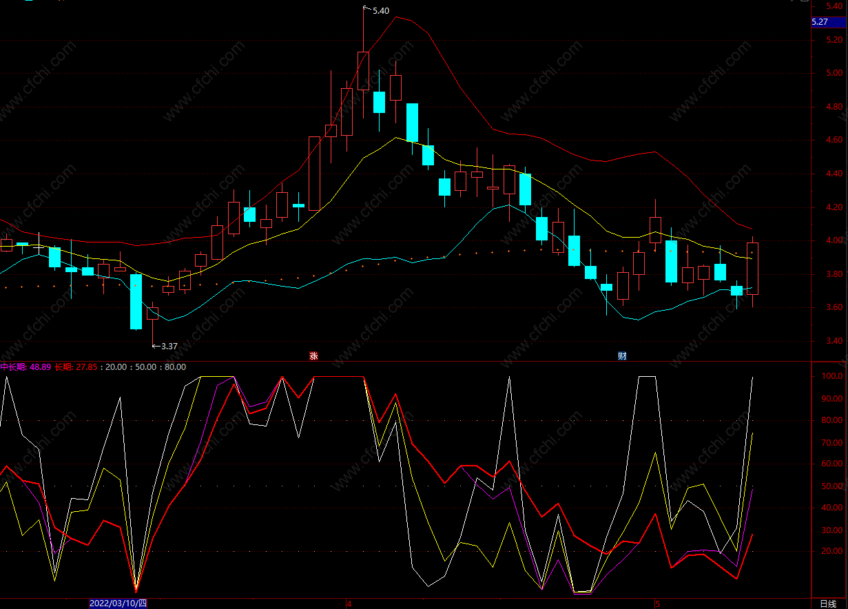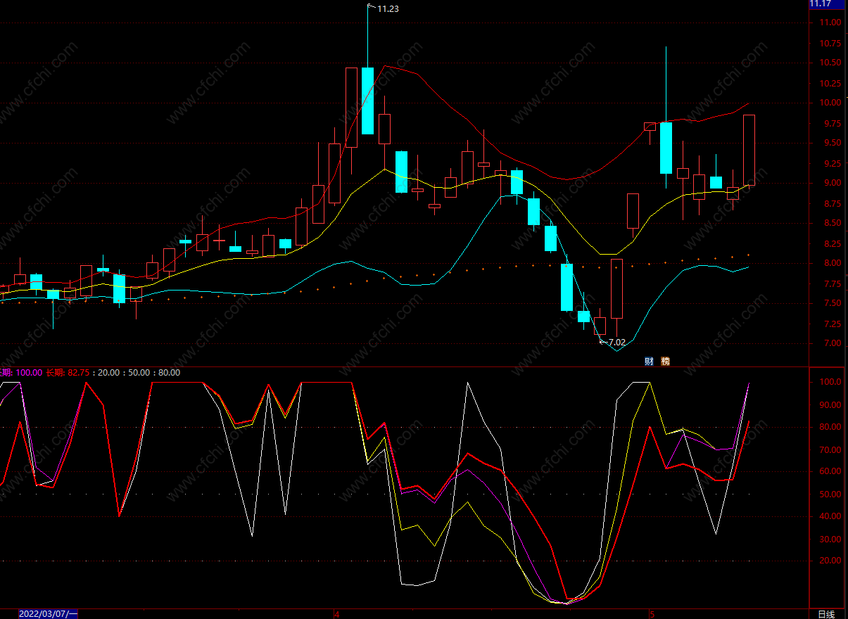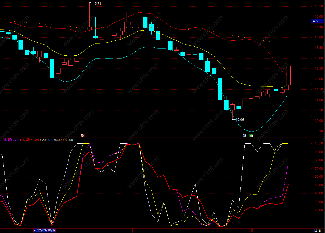中长期:100*(C-LLV(L,20))/(HHV(C,20)-LLV(L,20)),colormagenta;