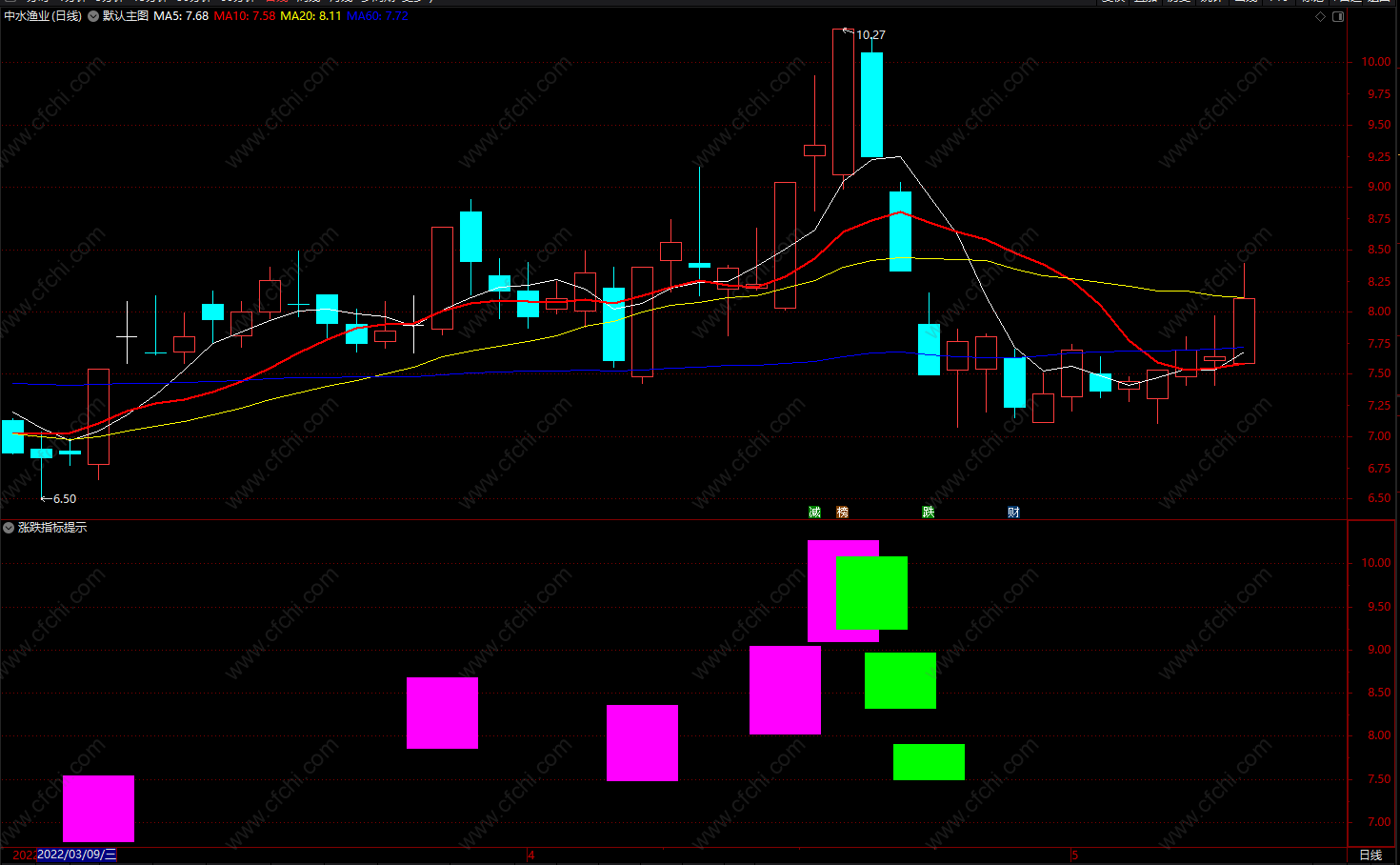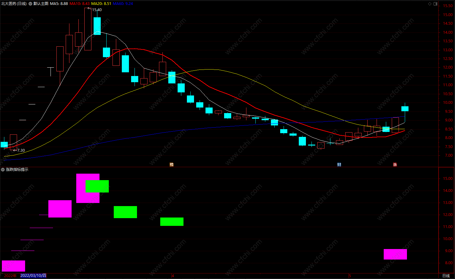 涨停变紫,跌停变绿通达信买卖点揭示公式 副图