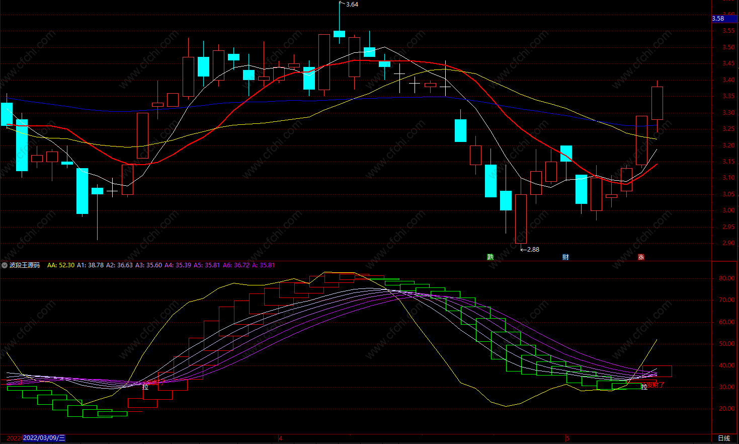 A5:EMA(A4, 3) , COLORFF33CC;