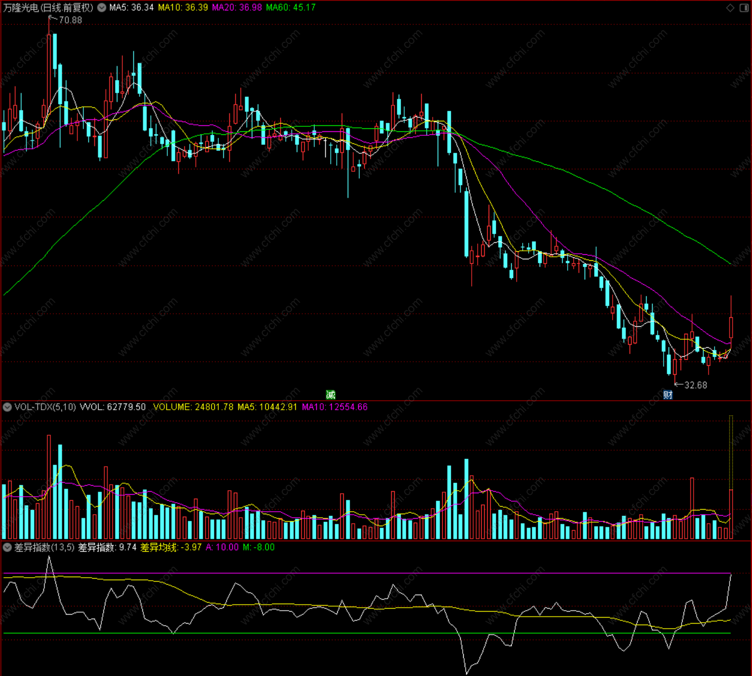 显示超买超卖差异的指标,小于0时为超卖,大于0时为超买。
