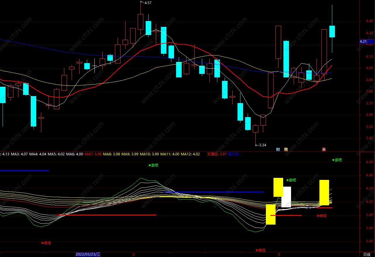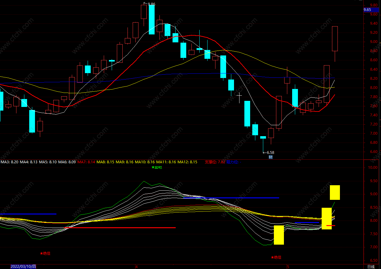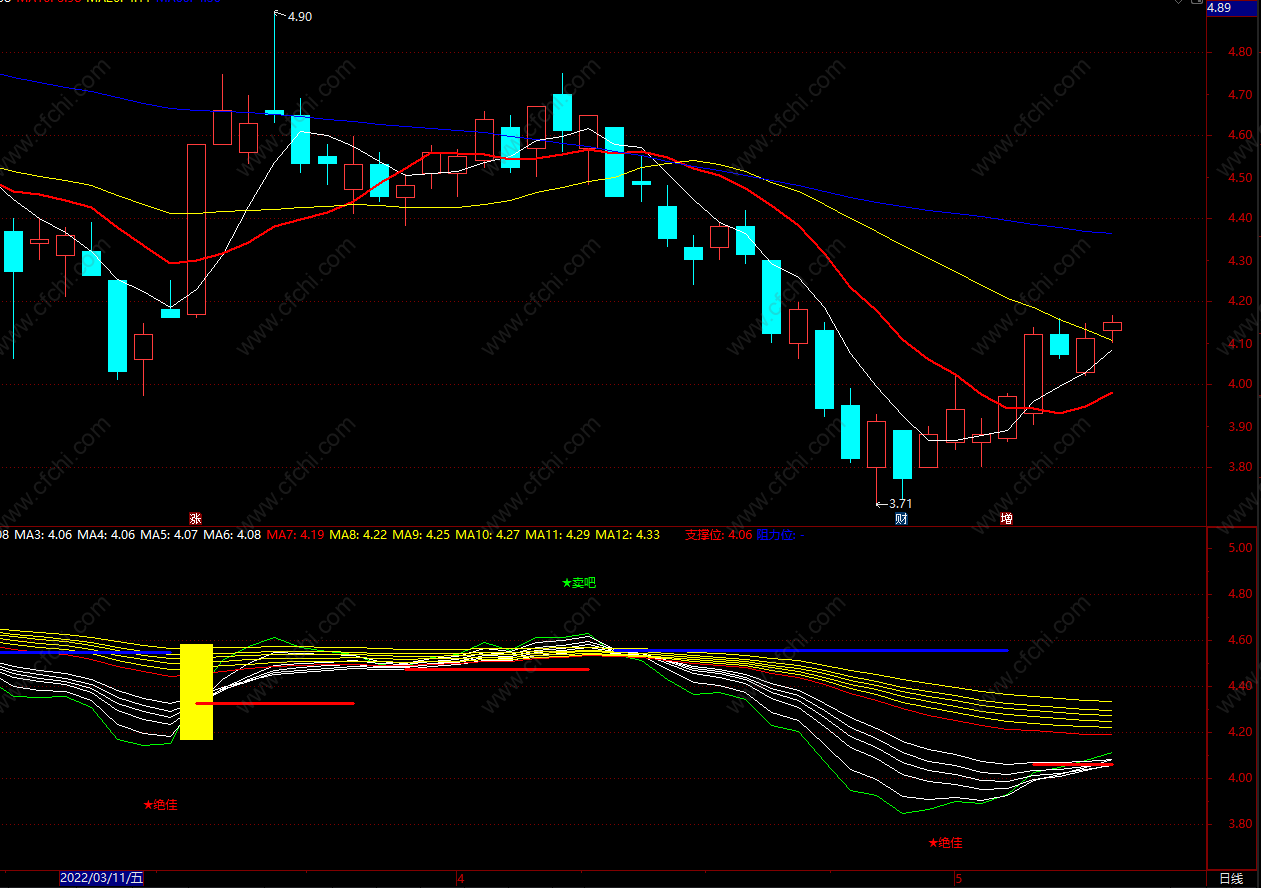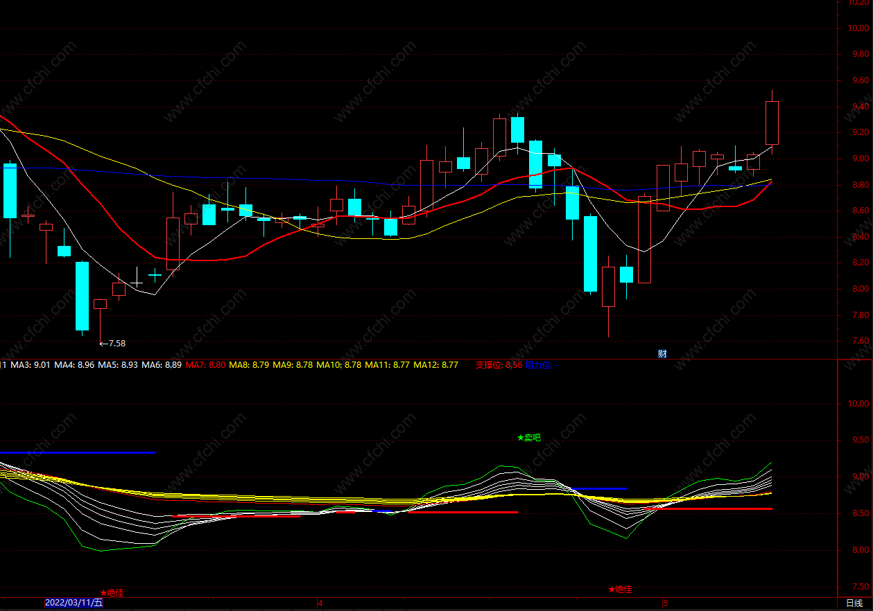 (顾比支撑阻力均线 通达信支撑位指标公式 副图 源码)