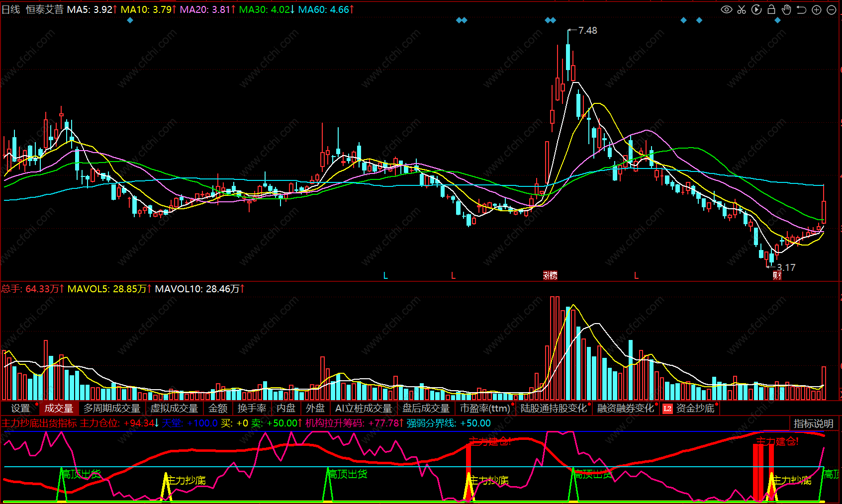 【财富池_量能分析】红粉黄绿四色绝版官方原创核心指,还原个股真实走势(量能判断)