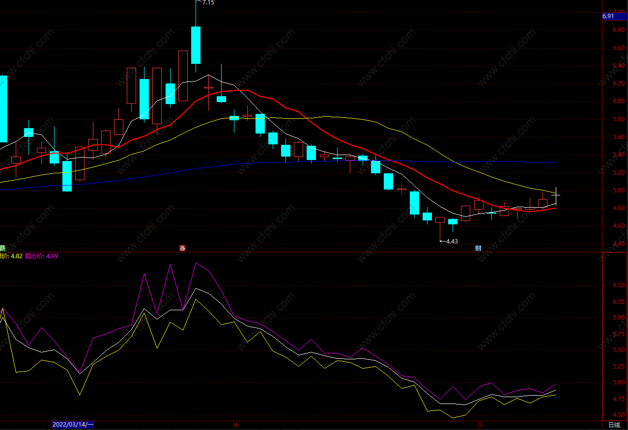 支撑价=上一交易日收盘价-上一交易日均价+上一交易日最低价
