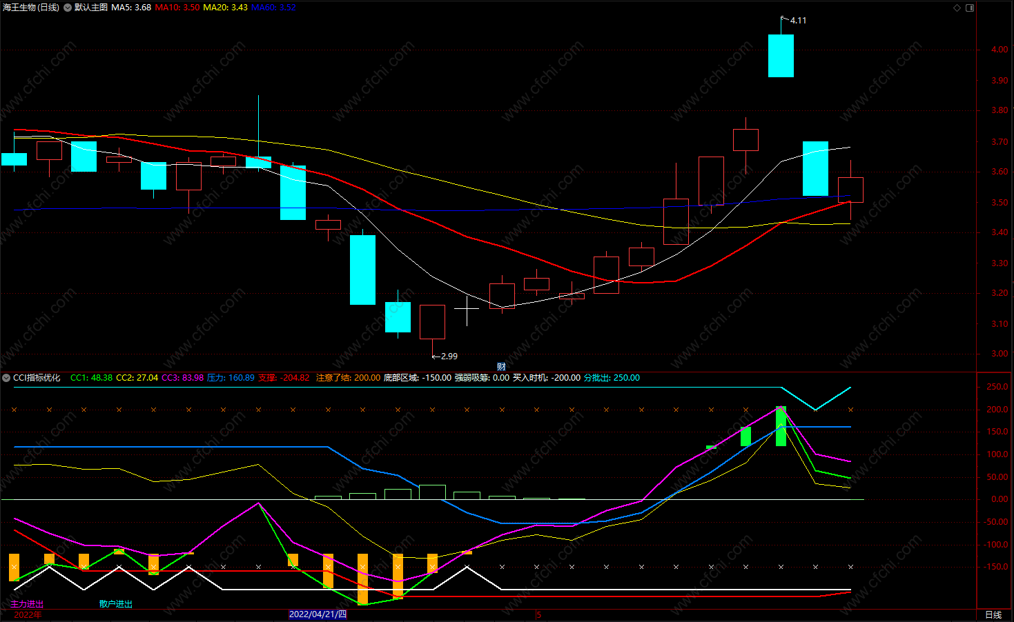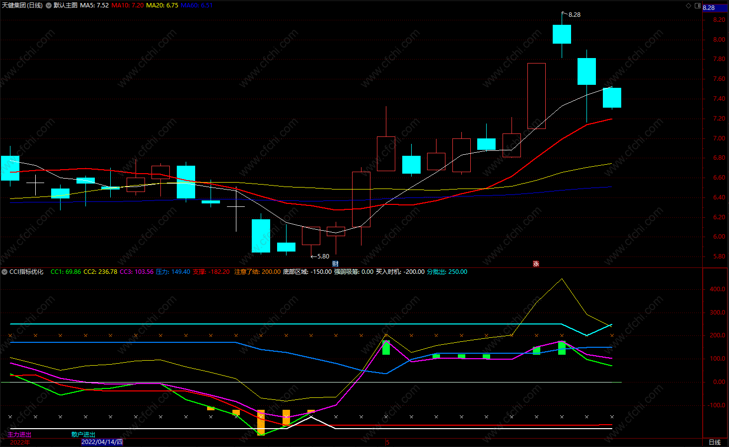通达信CCI趋势操盘线指标公式