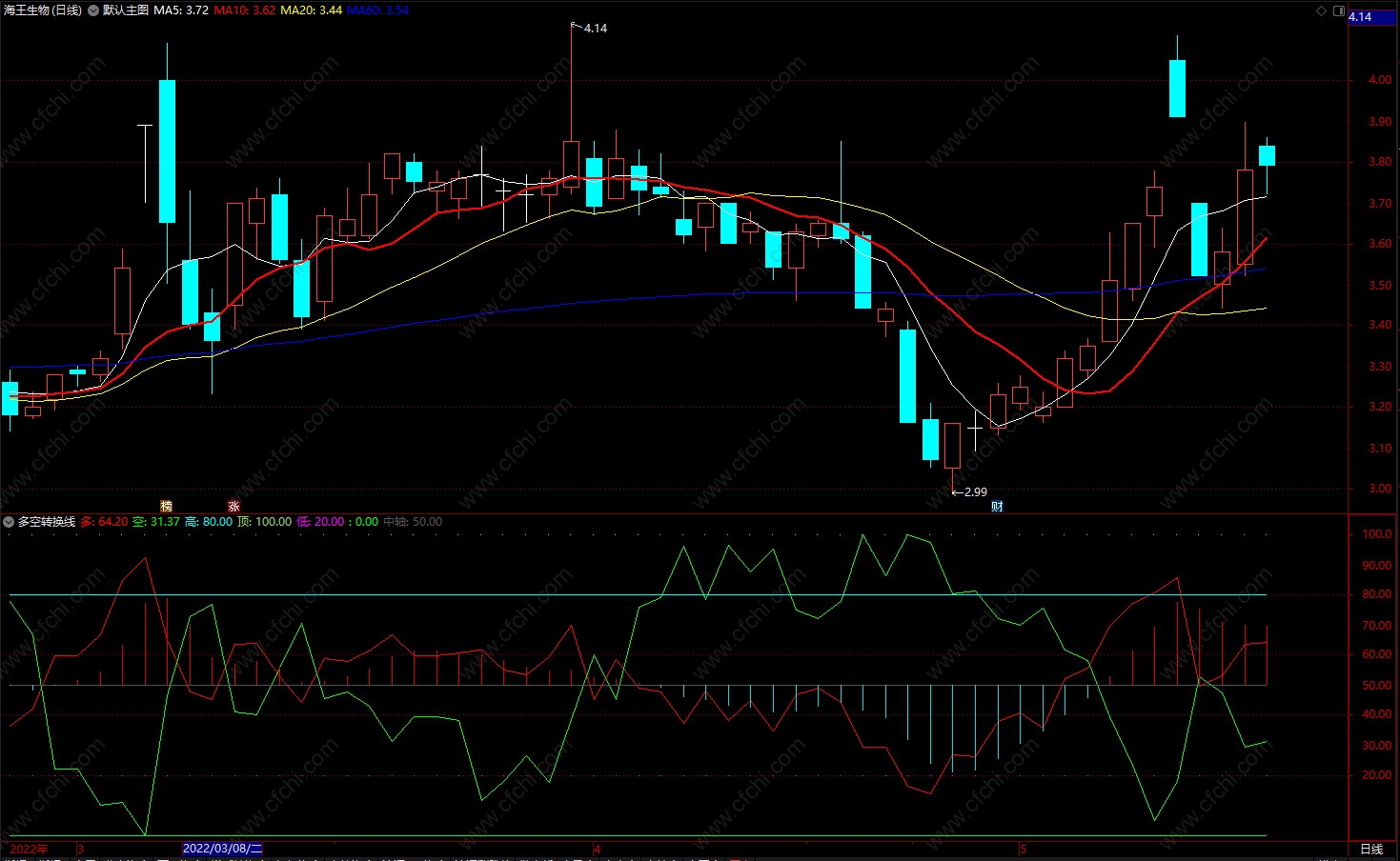 多空转换线 通达信多空红买绿卖指标公式 副图 源码