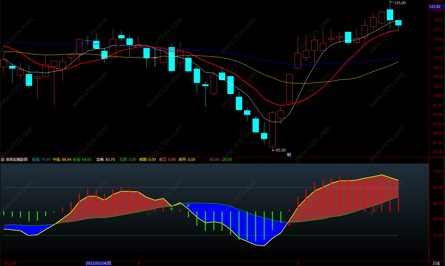 2、不管什么周期,只要(中线下穿长线)或(短线下穿80)即刻卖出。