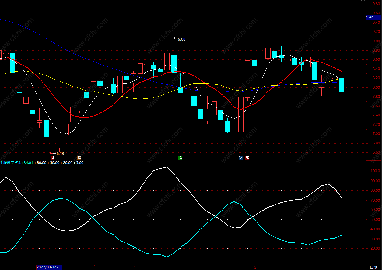 这个是主力做多线超过主力做空线买进,反正卖出,每个交叉点为关注点,成功率非常高