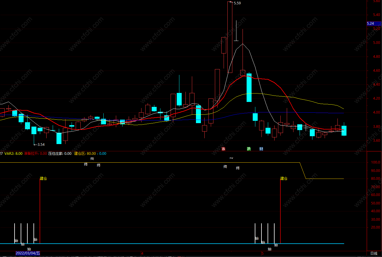准备拉升: IF(CROSS(VAR1,VAR2),80,0),STICK,COLOR0000CC,LINETHICK2;