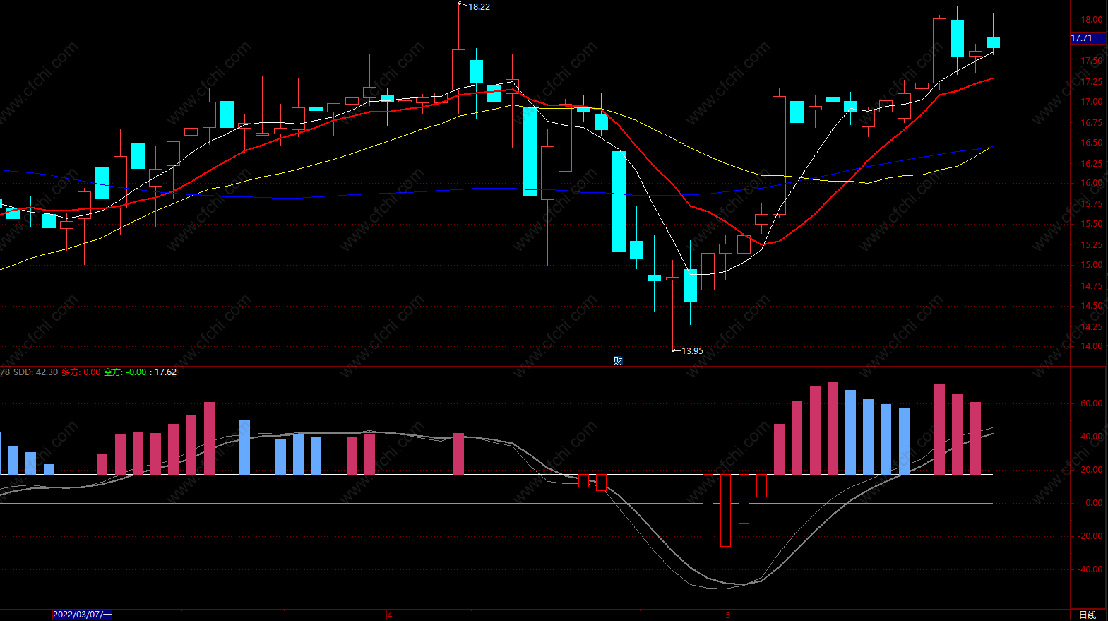 出现黄柱买参考蓝柱卖出参考,注意短中期均线需要走平上翘,效果要好一些