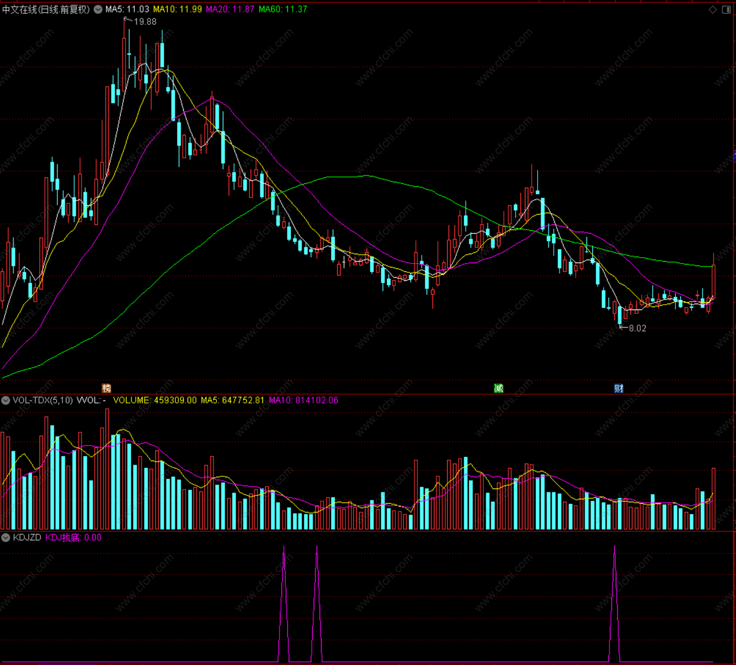 KDJ找底:IF(CROSS(H30,0),0.8,0)COLORMAGENTA;