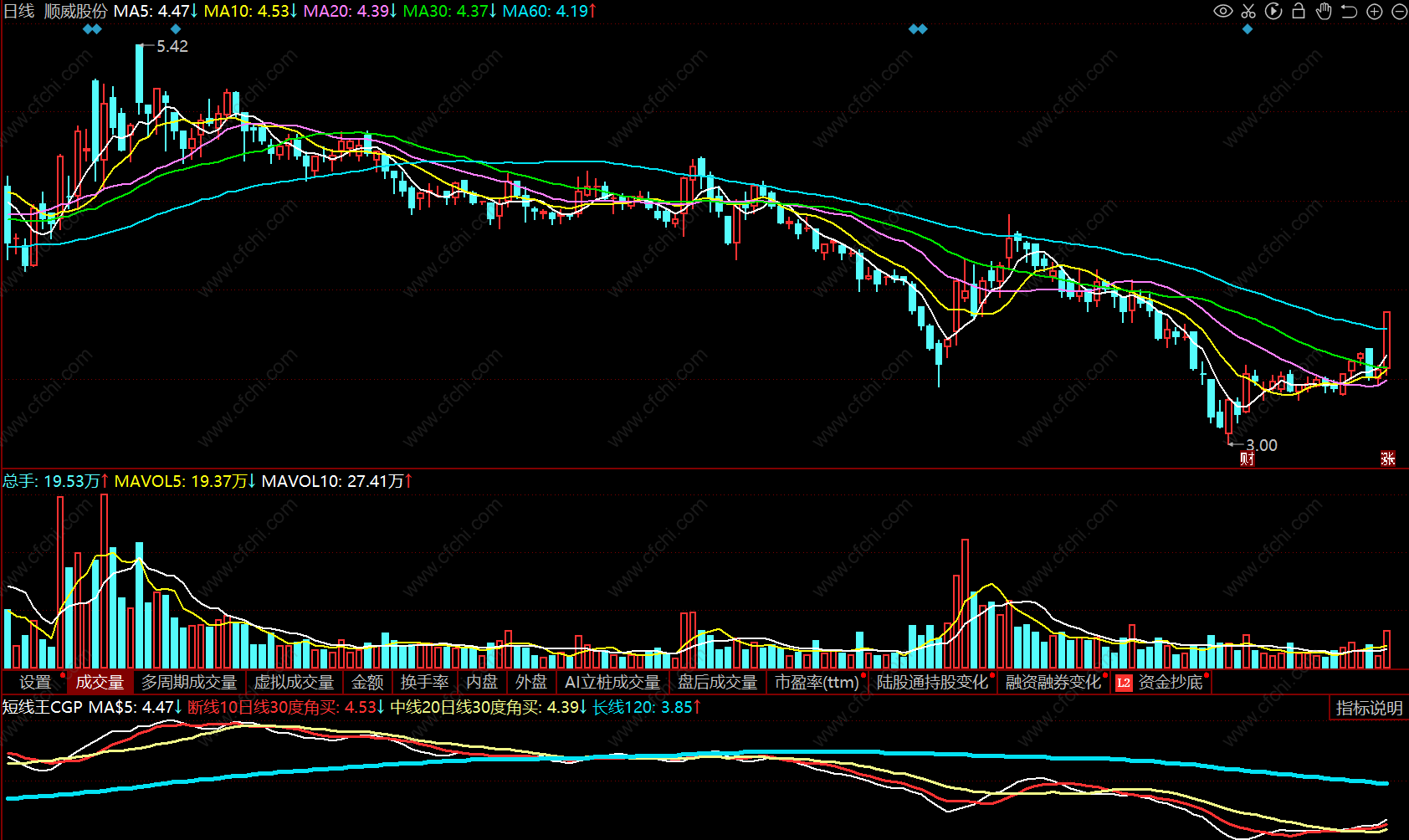 财富池指标公式网(www.cfchi.com)提醒您:指标公式是通过数学逻辑角度编写而来,仅是股票分析环节中的一个辅助工具,对股票选股效率和分析便捷上起到一定的作用,股市是具有不确定性和不可预测性的,请正常对待和使用指标公式!