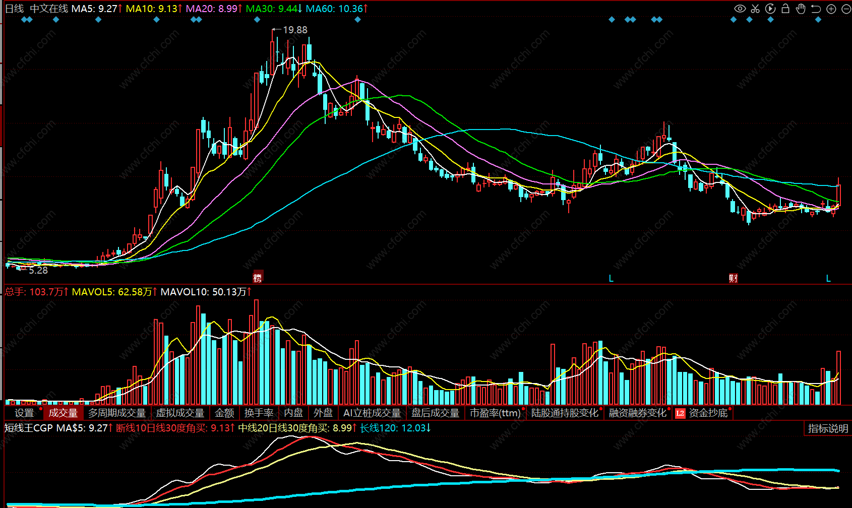 简单顶用,短线中线长线一起看,用那个看那个。十分好的指标公式10日线30度角向上,估价站上10日线断线买,20日想向上30度角以上,估价站上20日线买