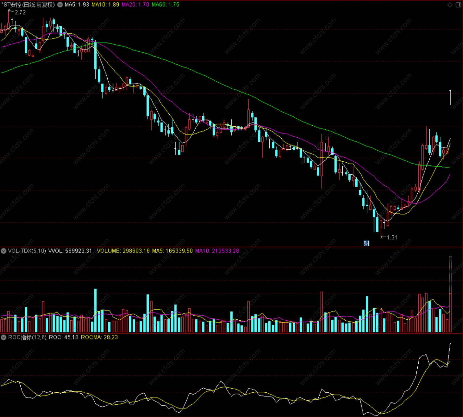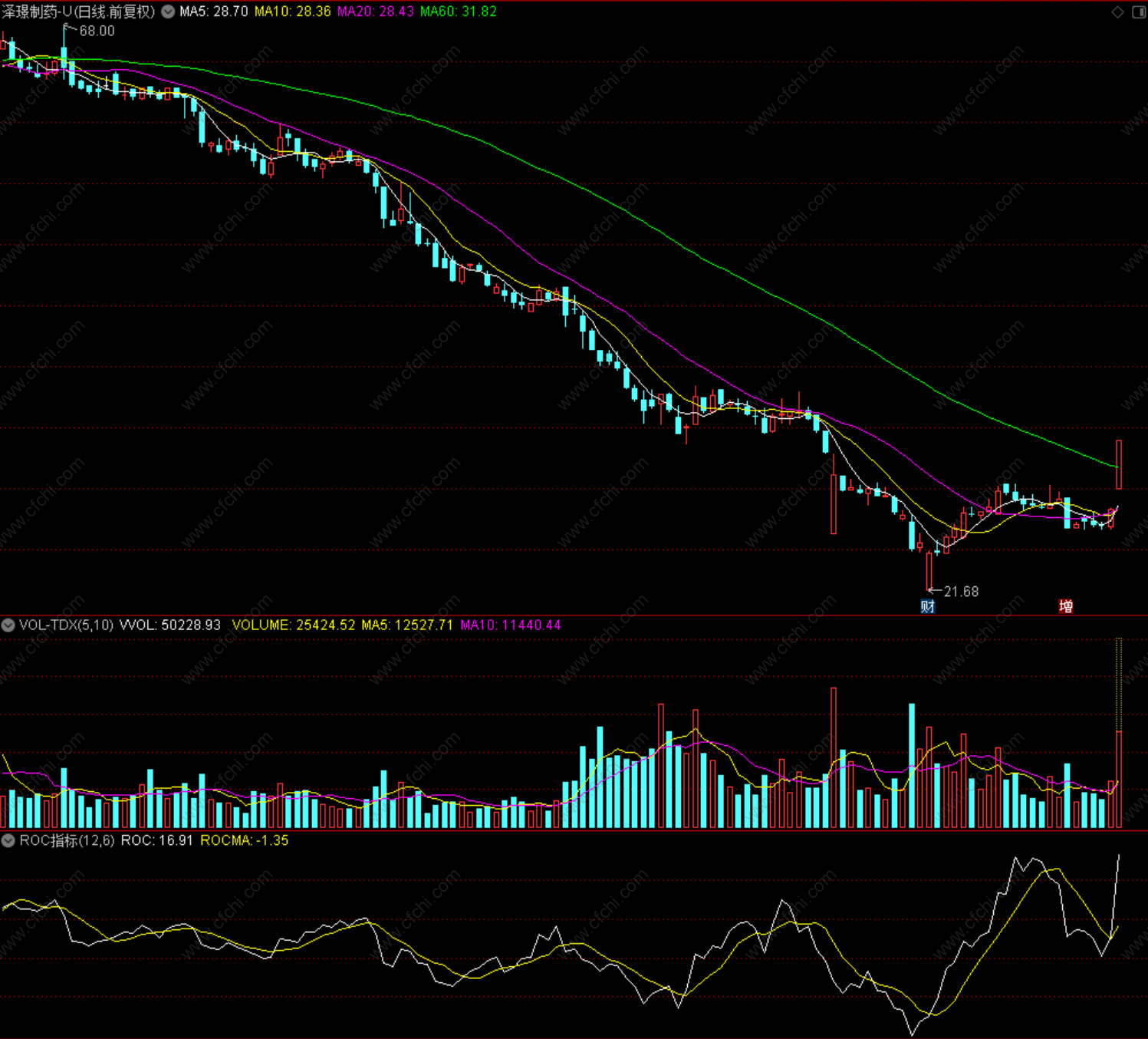 1.ROC向下跌破零,卖出信号;