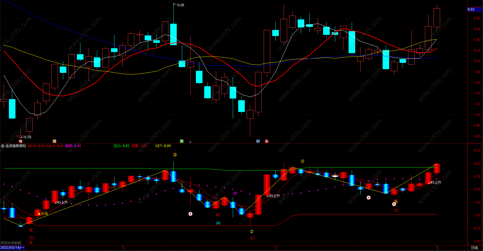 (金波趋势指标 通达信测量趋势强度指标 源码 副图)