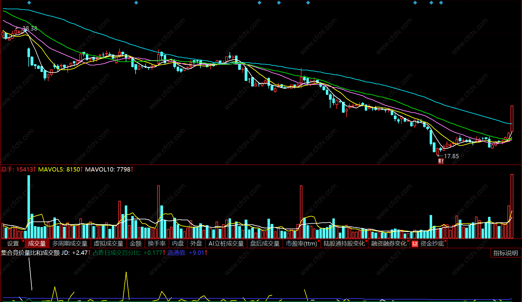 集合竞价量比和成交额 同花顺 副图 源码 指标公式