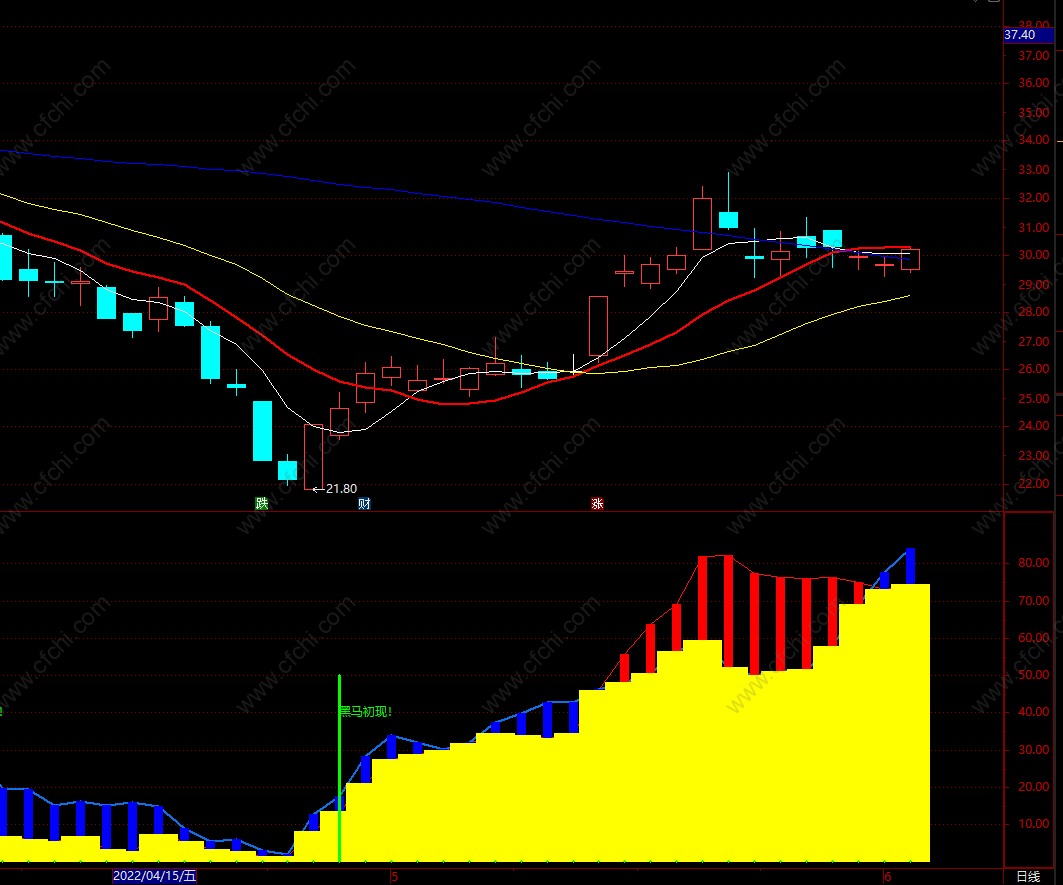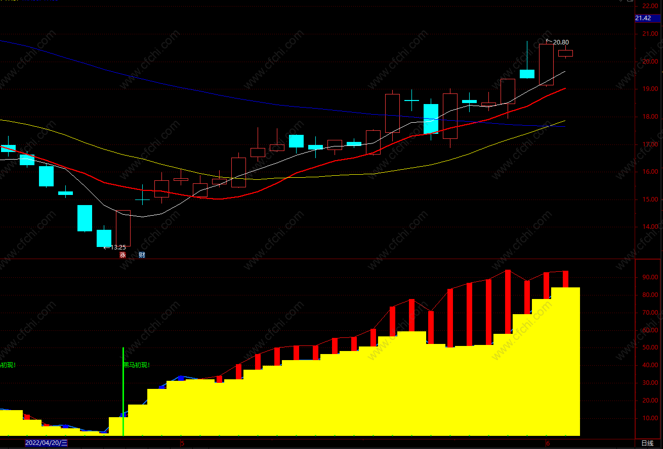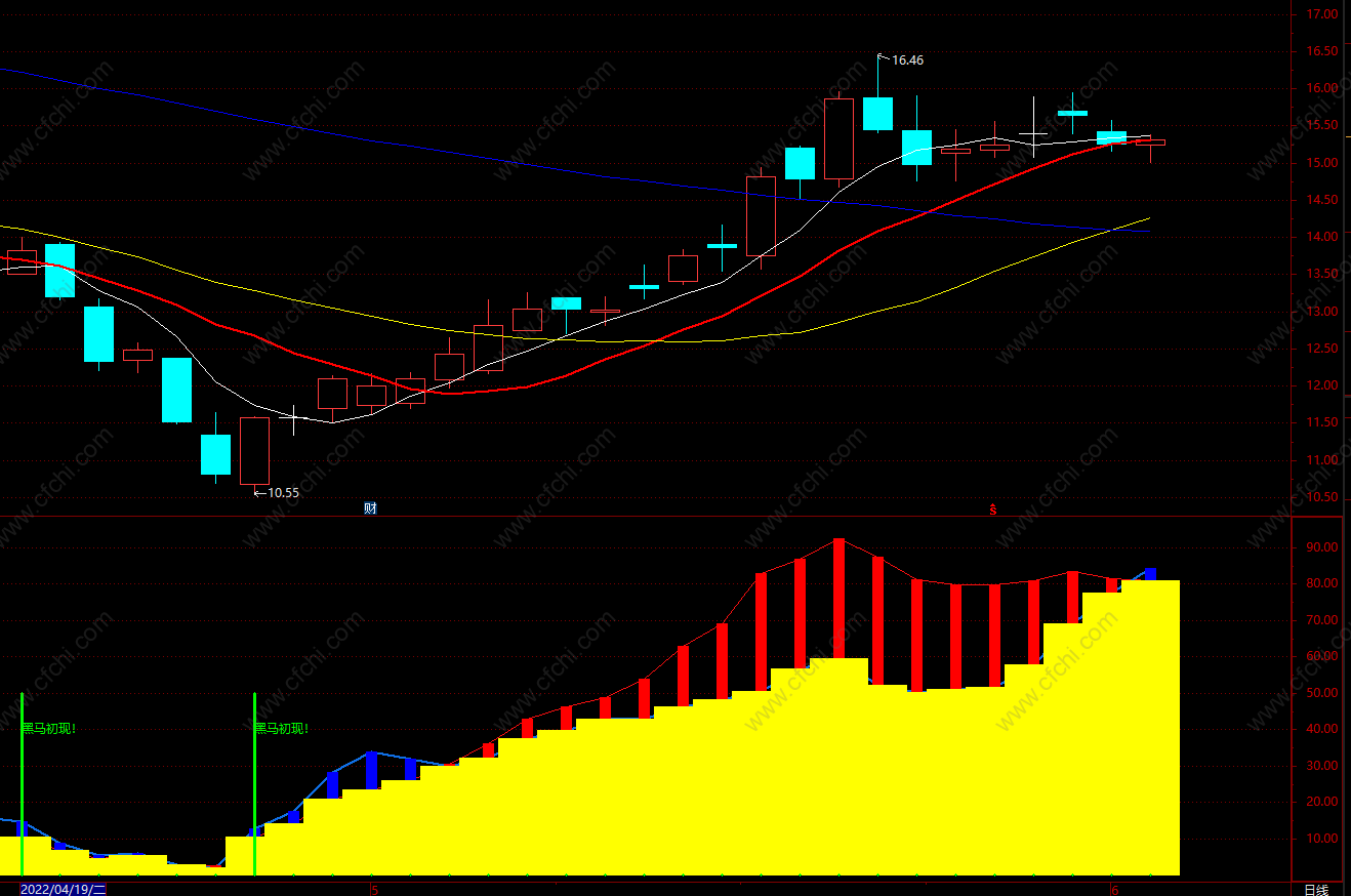 筹码底部提示,“黑马初现”买入提示,红色上涨趋势!