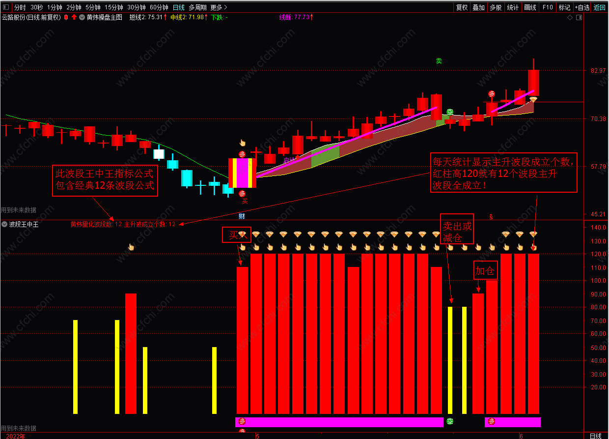 的波浪个数从6个逐步增加到最大值12,6个当天可买入,