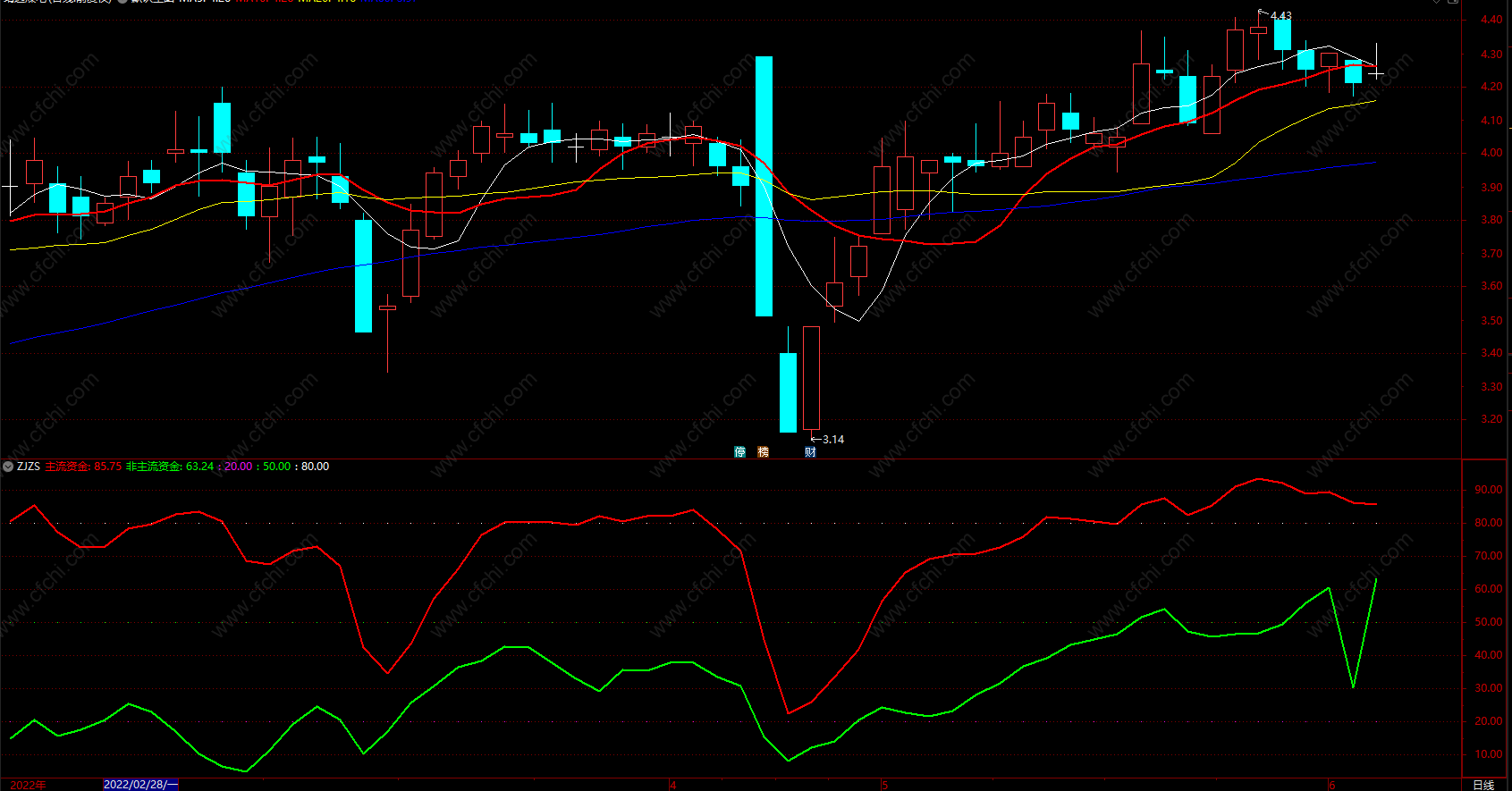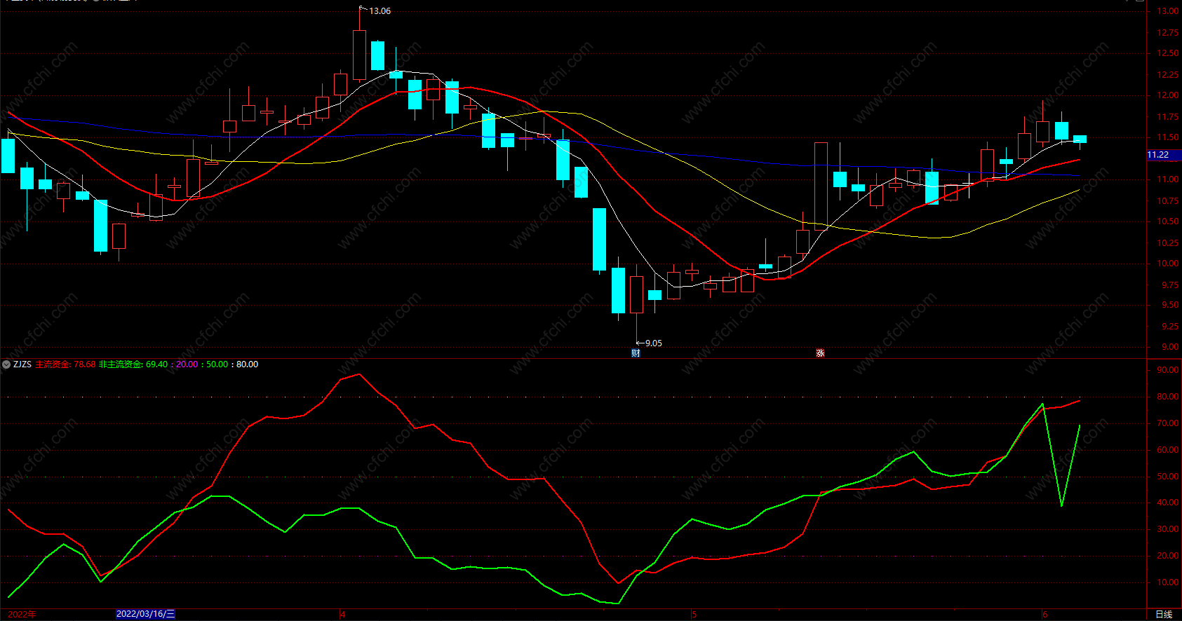 (通达信ZJZS 超准主力资金进场指标副图 源码)
