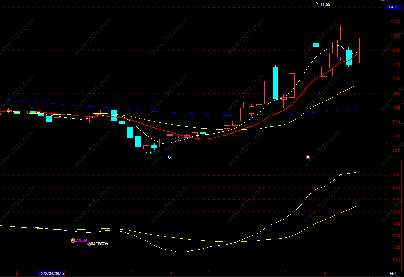 DRAWTEXT(B1,L-0.30,'MACD底背'),colorwhite;