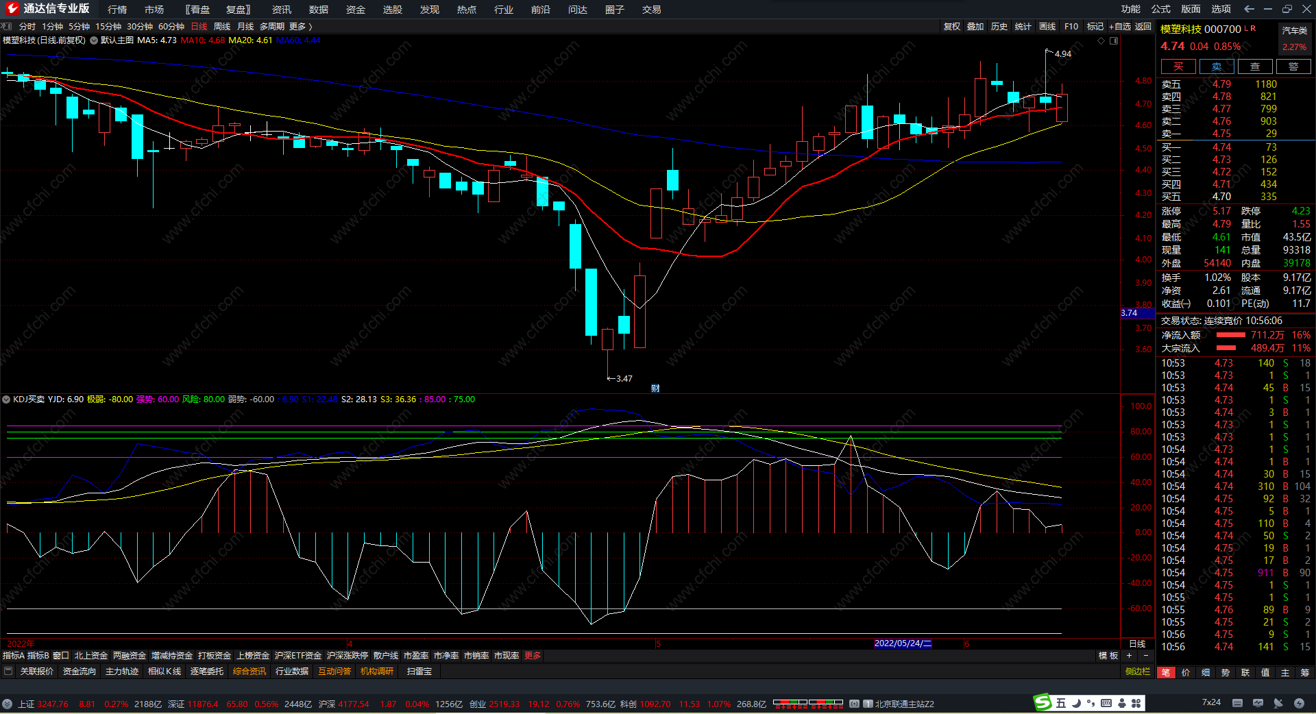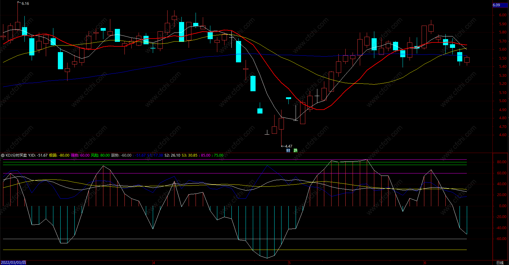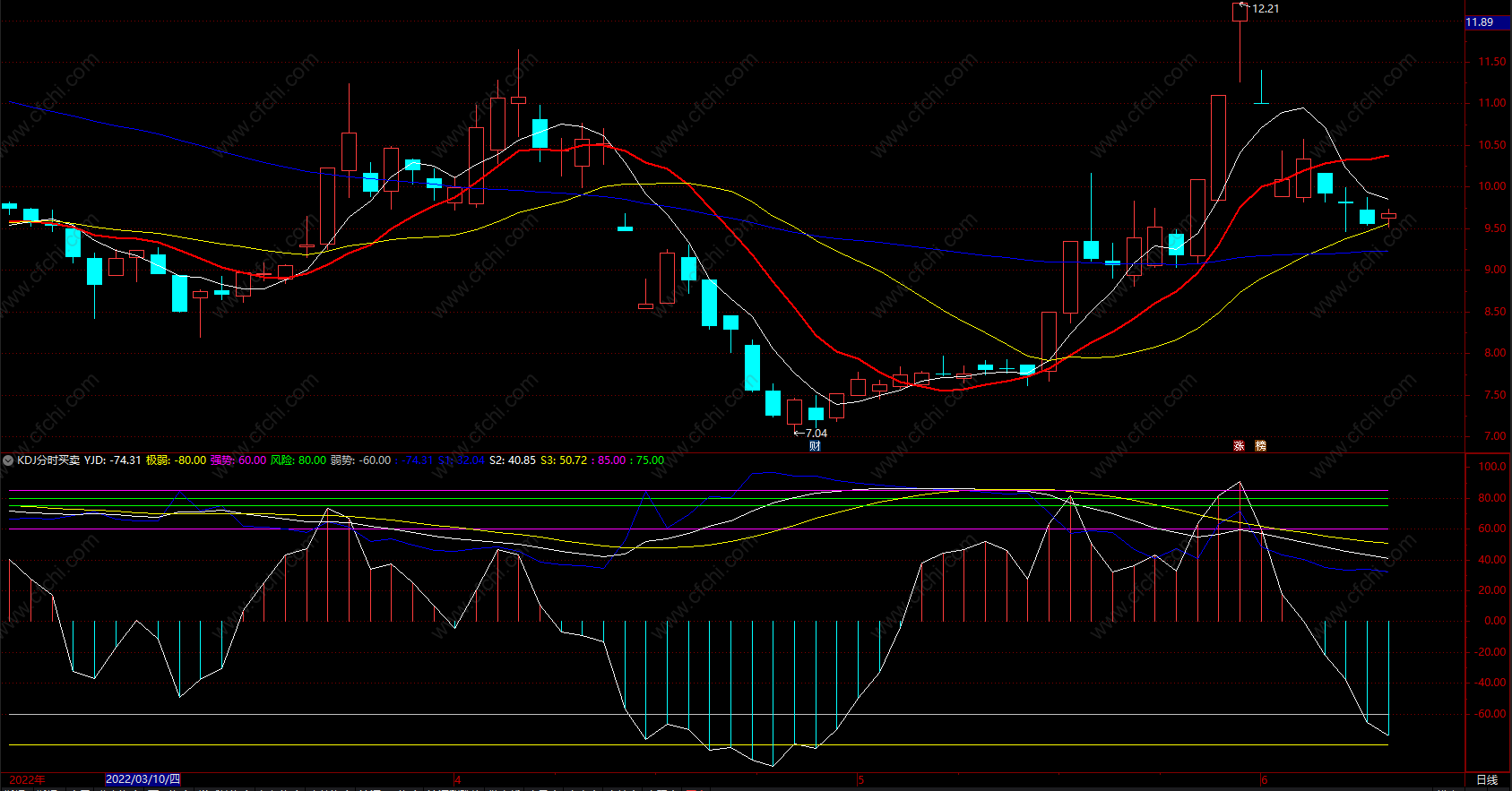KDJ分时买卖指标利用KDJ趋势,能很好的观察个股的股价走势。结合MACD指标,效果更好。