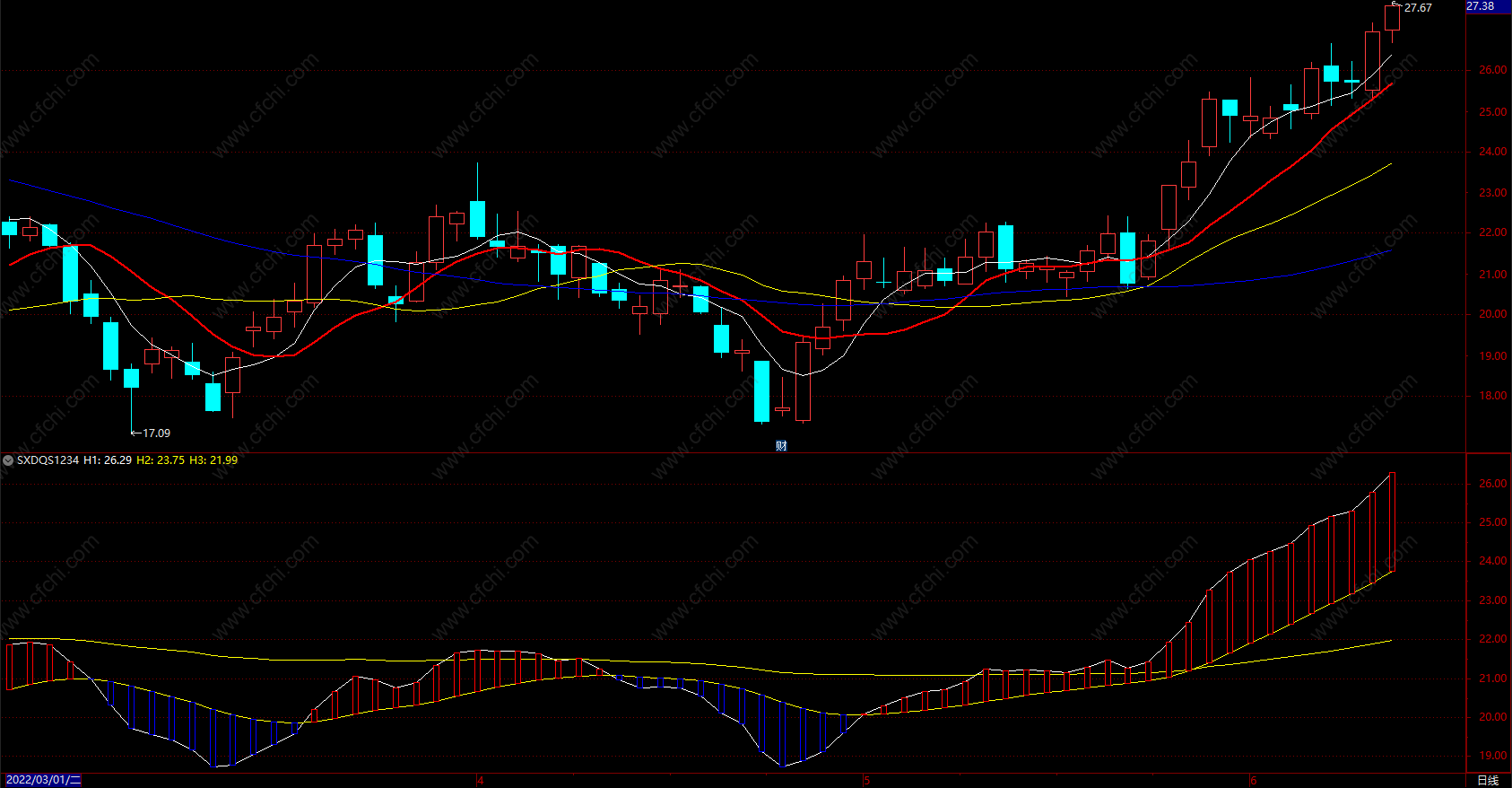 财富池指标公式网(www.cfchi.com)提醒您:指标公式是通过数学逻辑角度编写而来,仅是股票分析环节中的一个辅助工具,对股票选股效率和分析便捷上起到一定的作用,股市是具有不确定性和不可预测性的,请正常对待和使用指标公式!