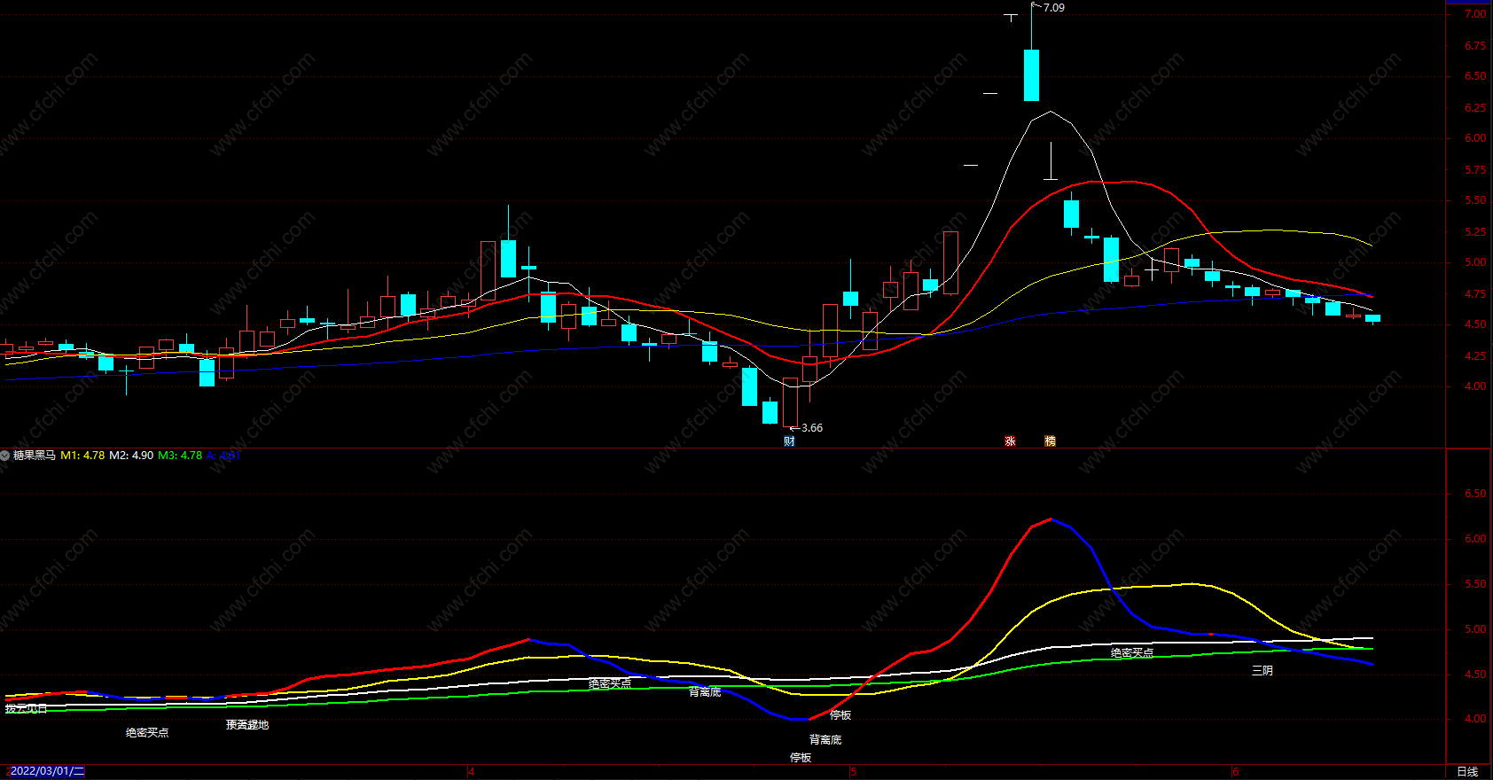 (糖果黑马 通达信超级黑马公式 底部资金副图)