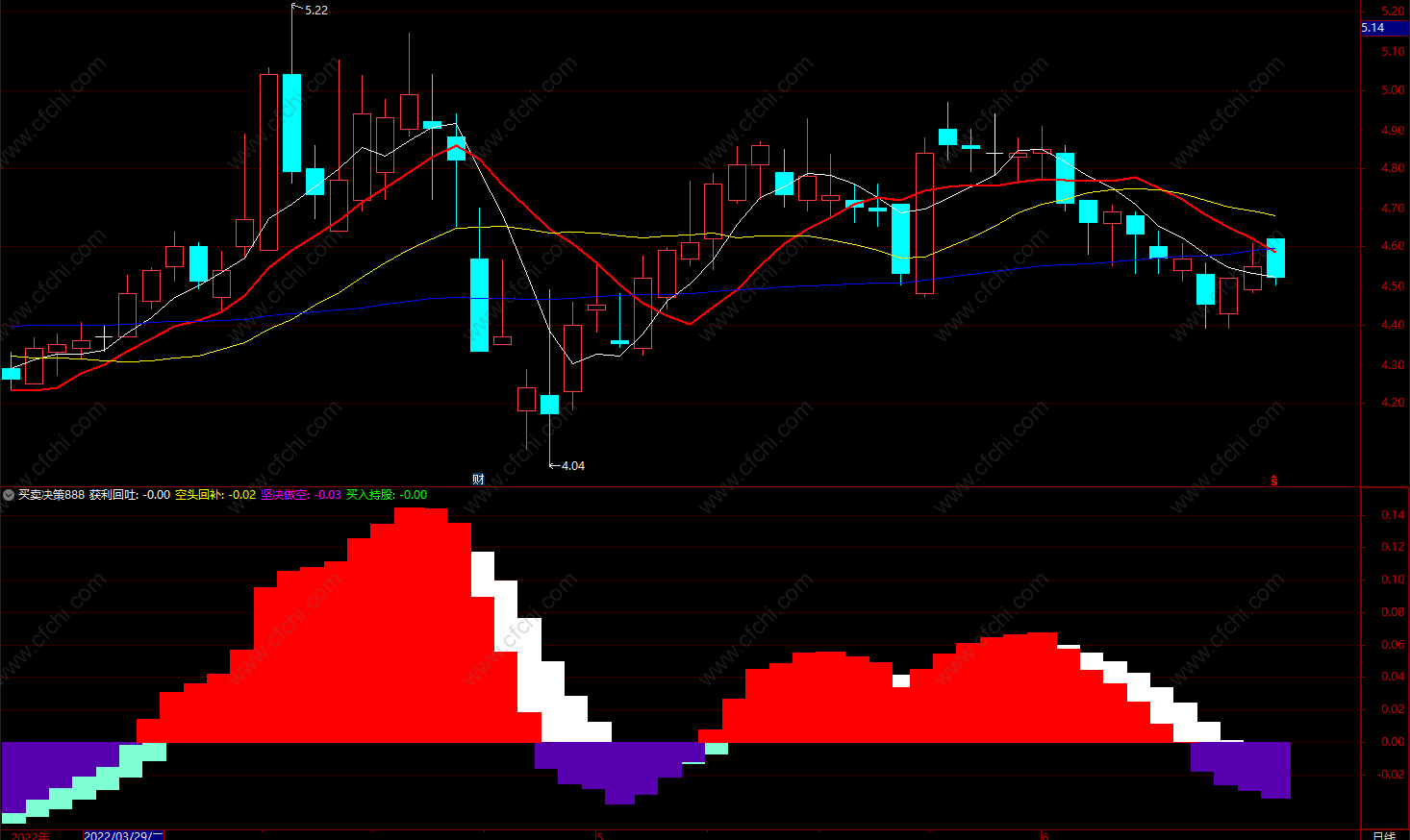此时可观注、绿柱越长说明回补加大,红色柱上方岀现白色柱说明获利开始回吐