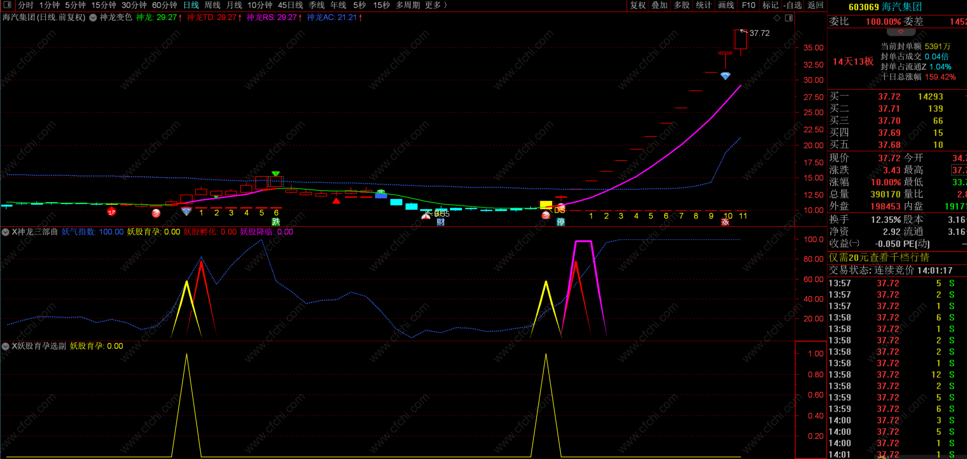 (【神龙三部曲】神龙三部曲副指标+妖股育孕选股指标,三步捉妖@通达信无未来不加密)