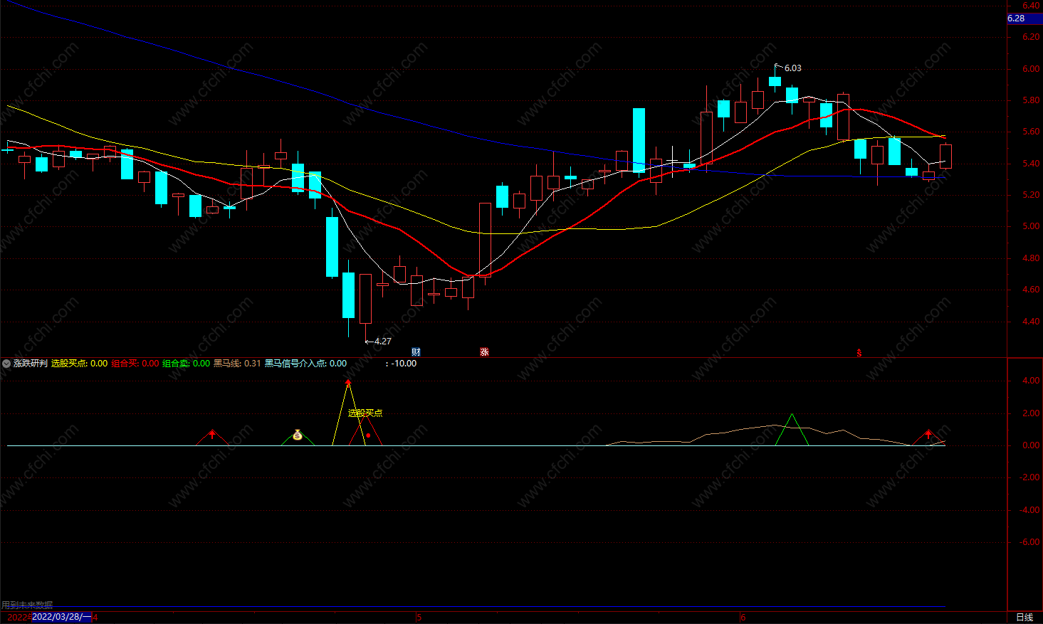 DRAWTEXT(黑马信号介入点>0,4.5,'●我的黑马介入点'), colorred;