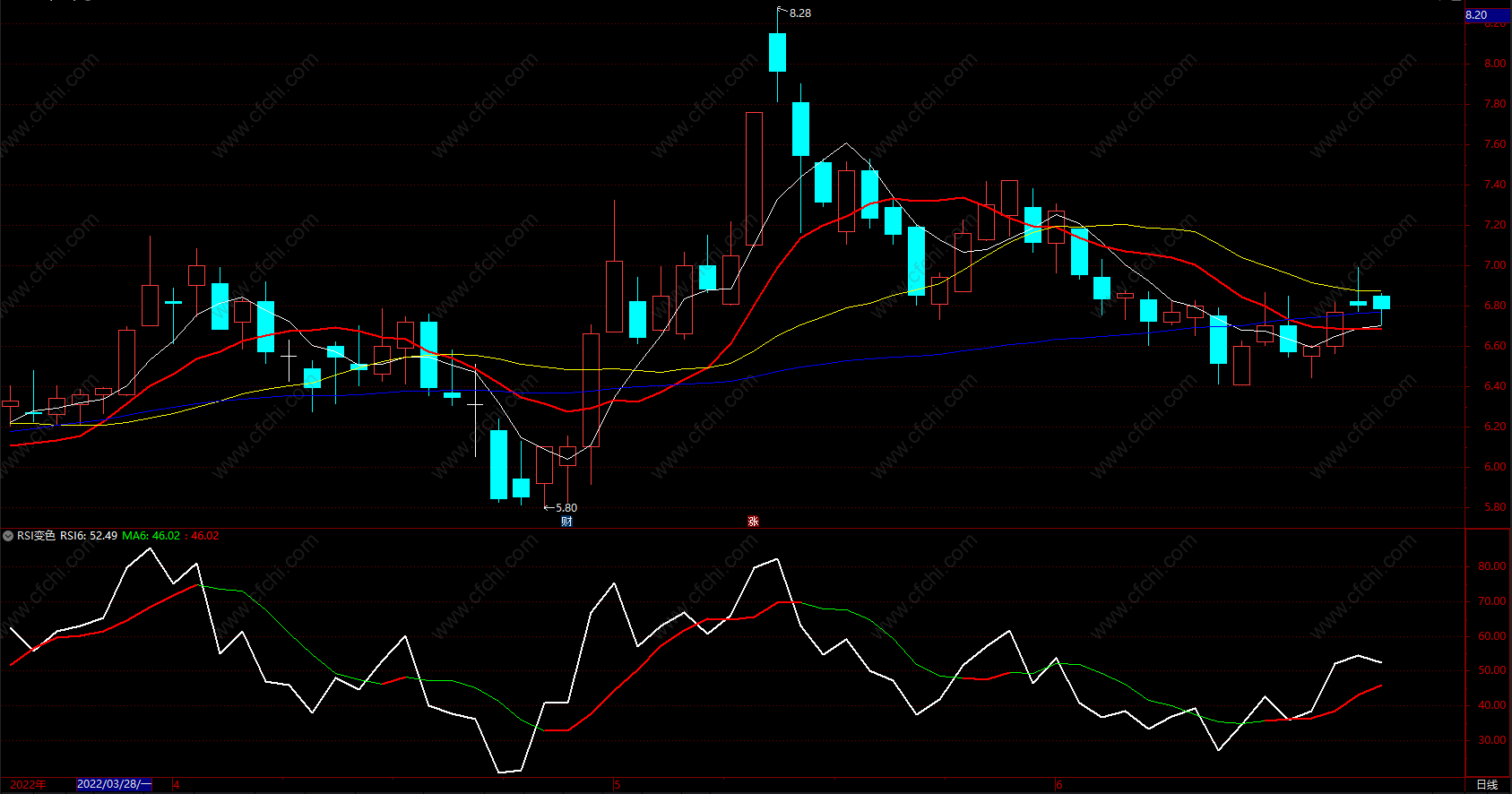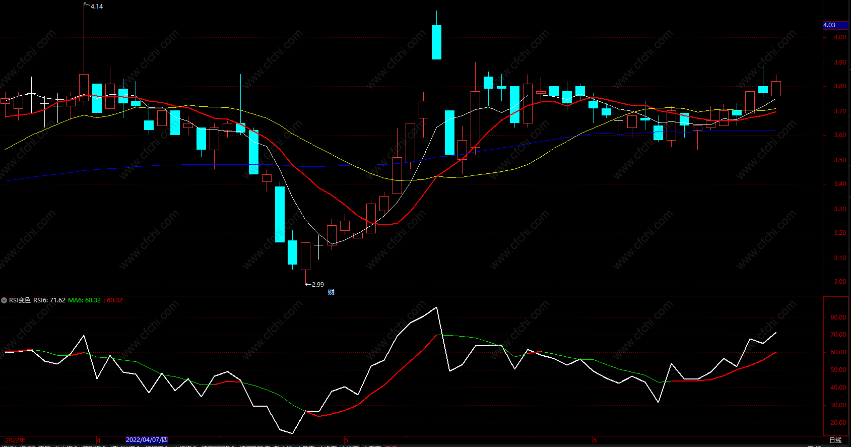 (RSI变色 通达信RSI变色副图指标公式 源码)