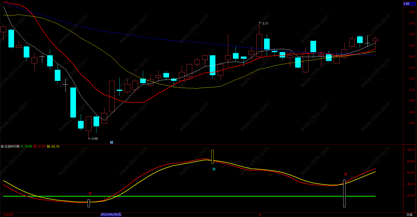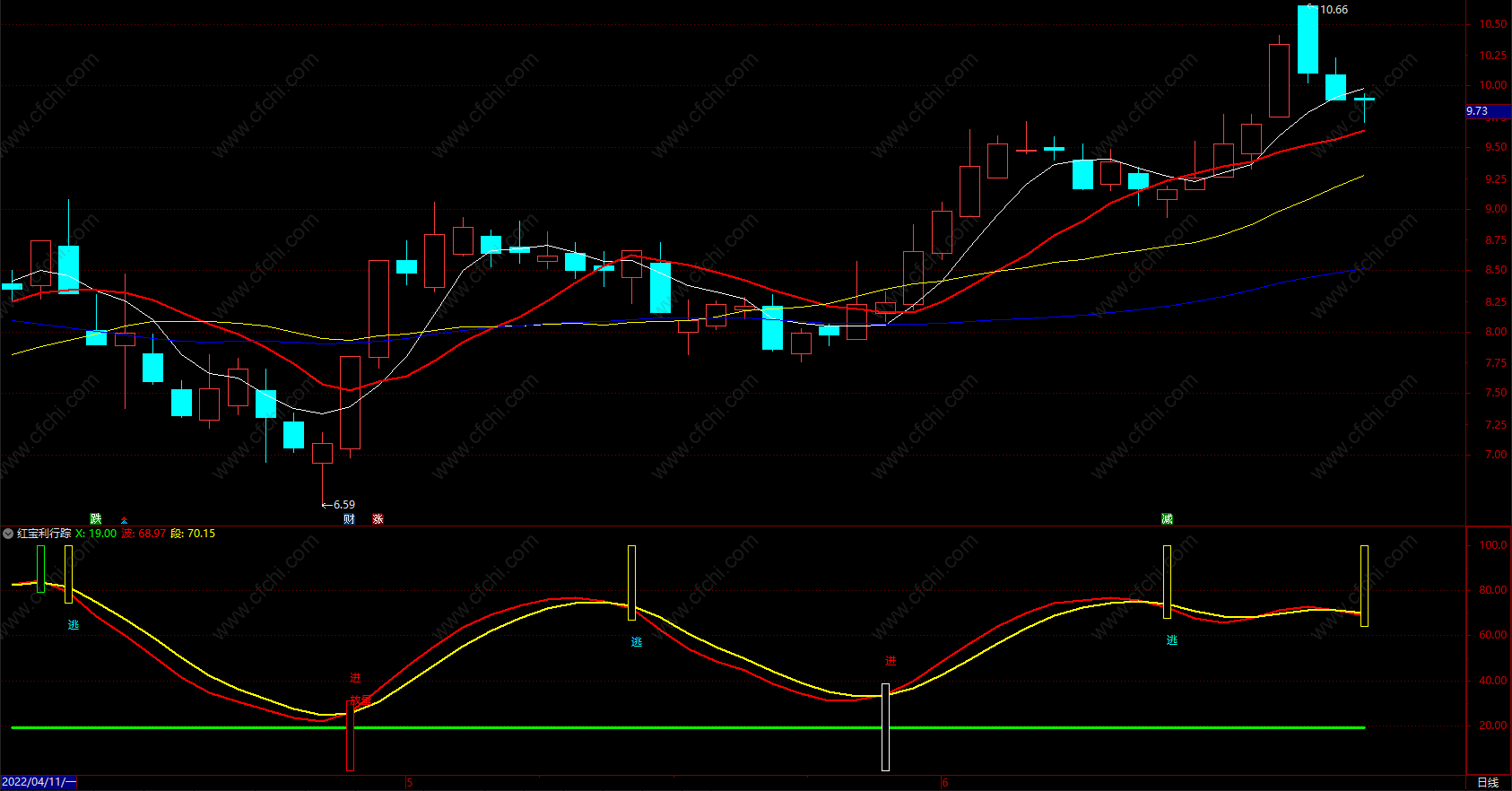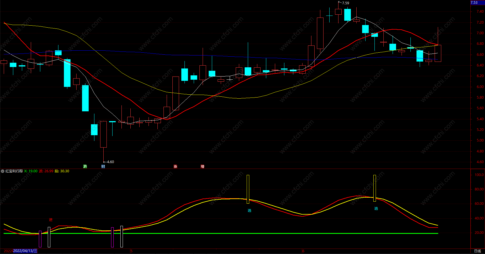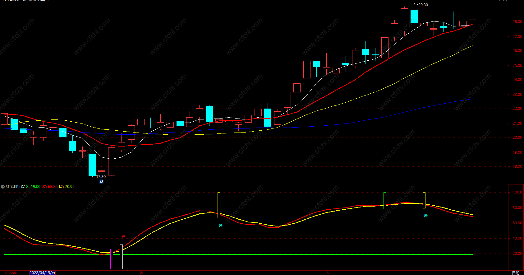 (红宝利行踪 通达信买卖明确买卖点指标公式 副图 贴图 源码)
