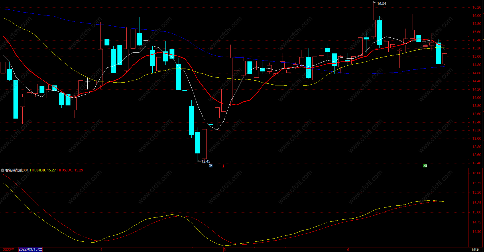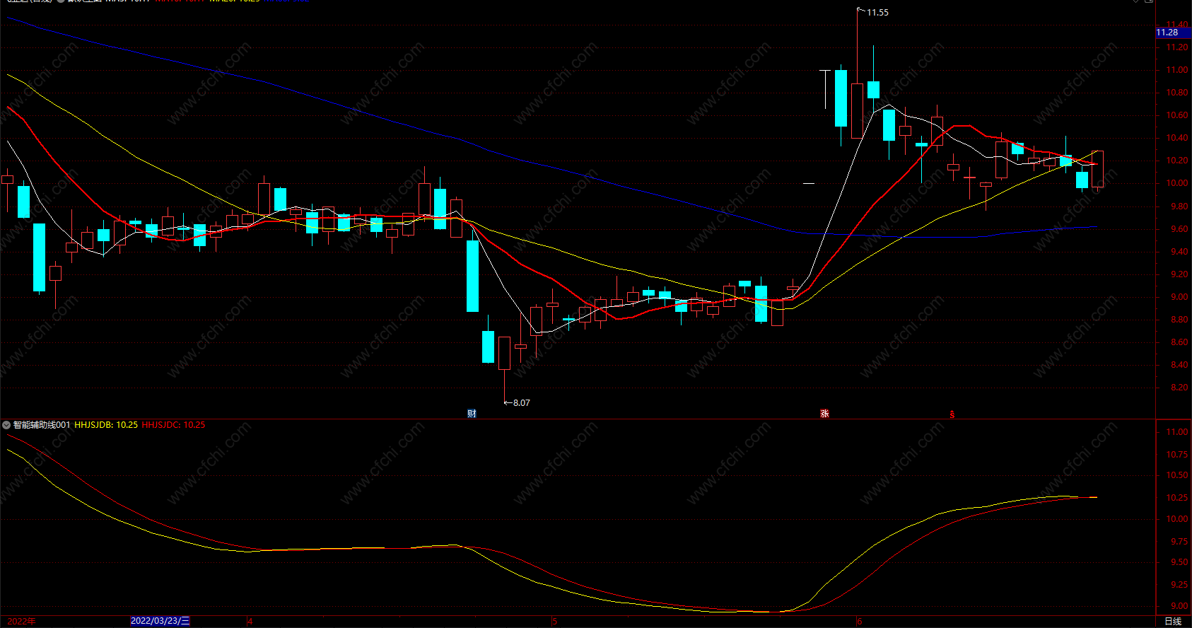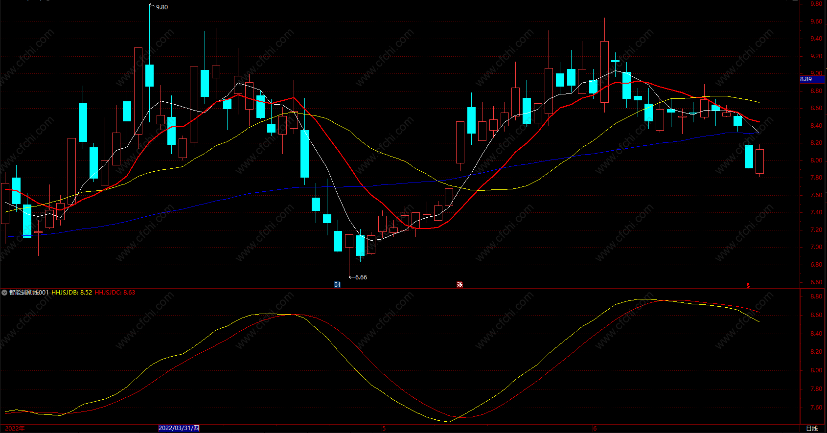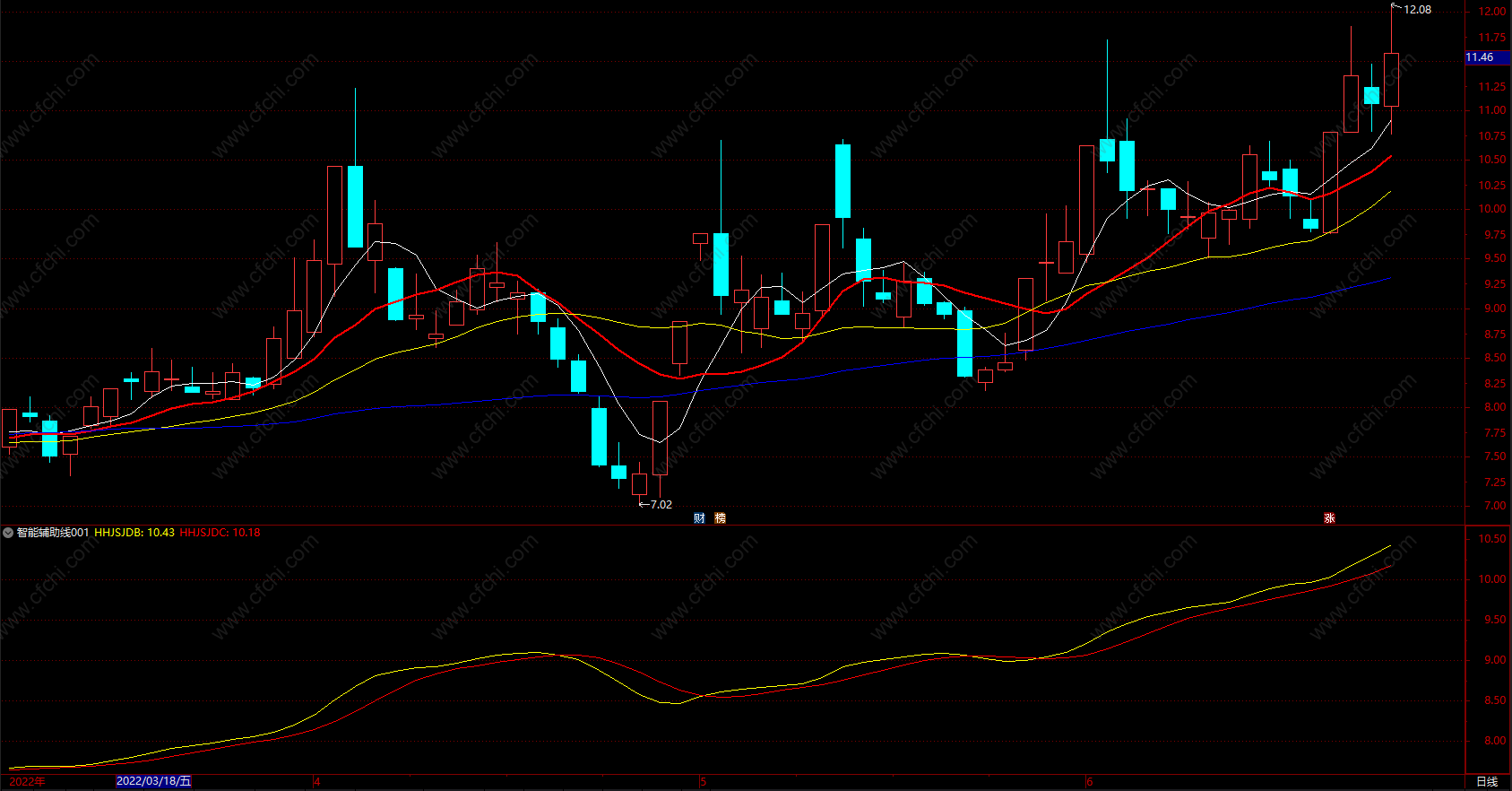 (通达信智能辅助线001金叉趋势买入提示 副图 源码)