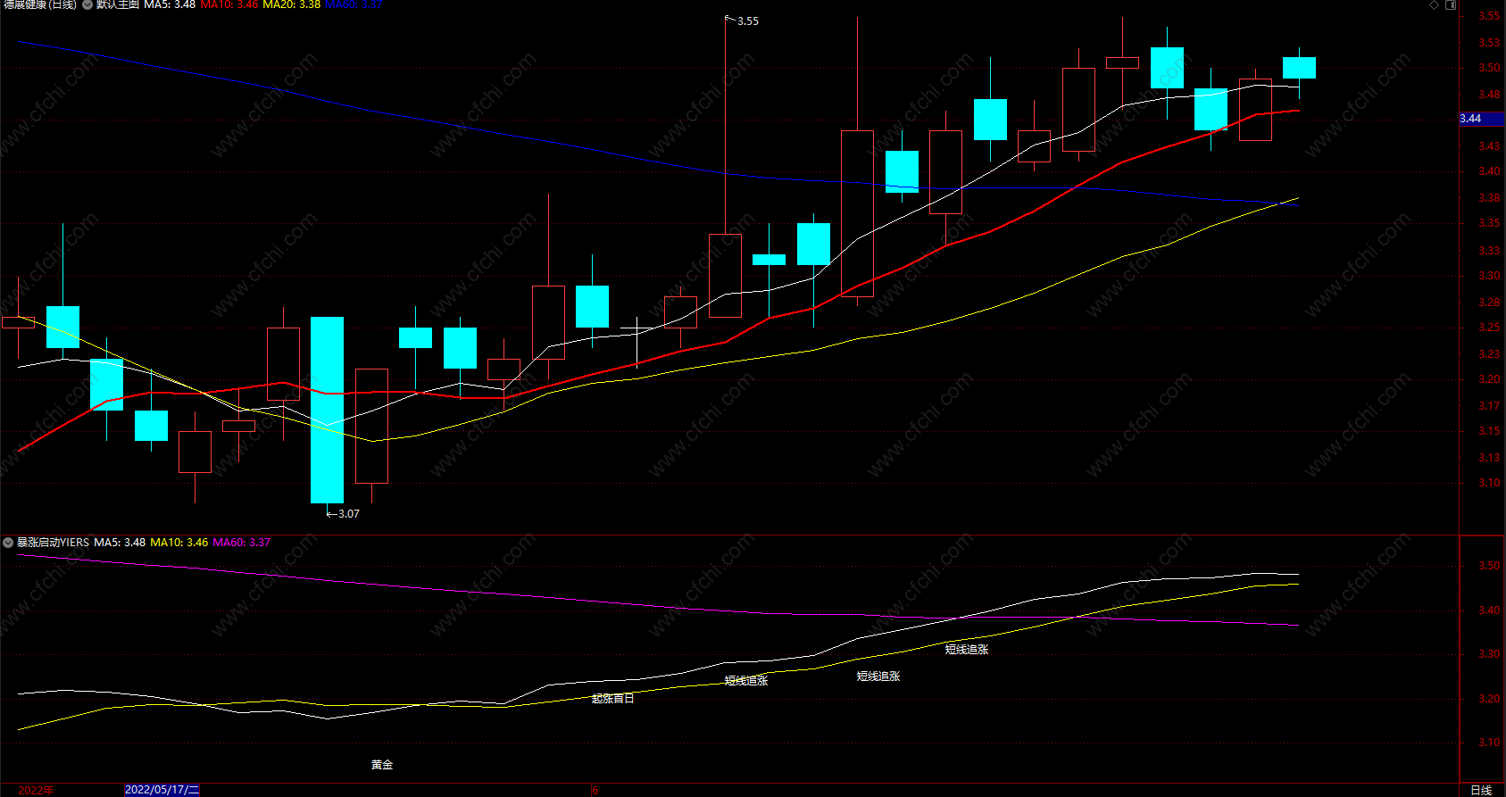 DRAWTEXT(Aw AND Bw AND Ew AND Fw AND TXw,L-0.03,'起涨首日');