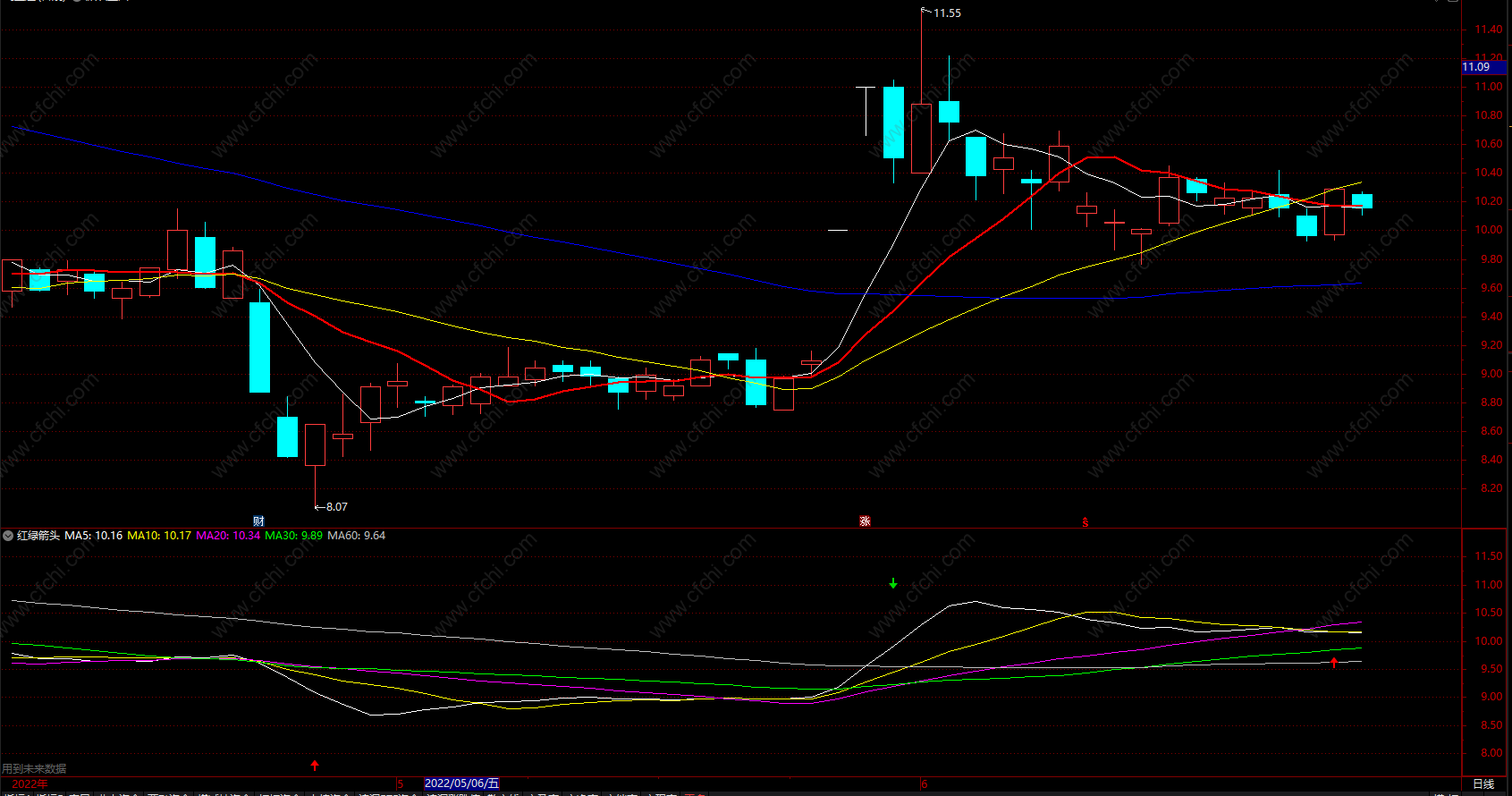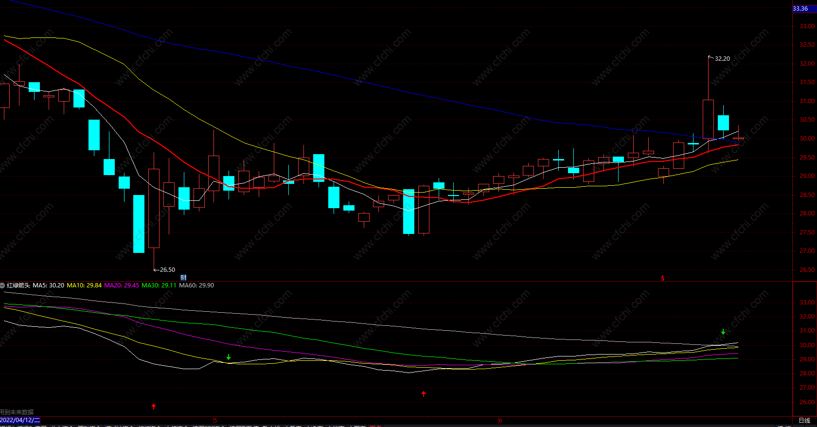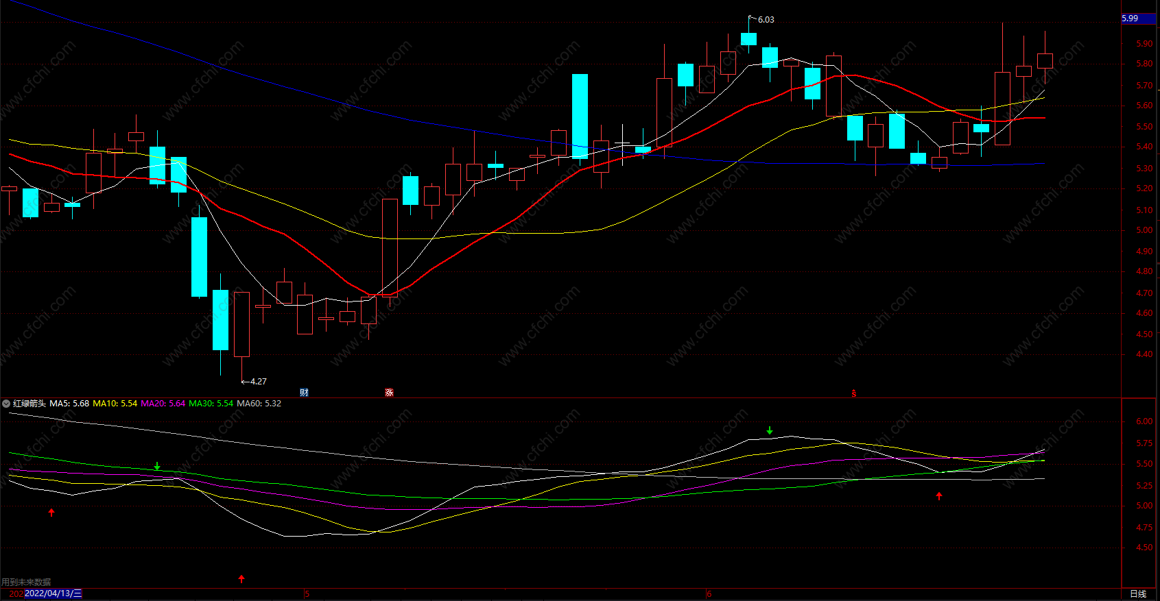 用红、绿颜色剪头提示买卖点