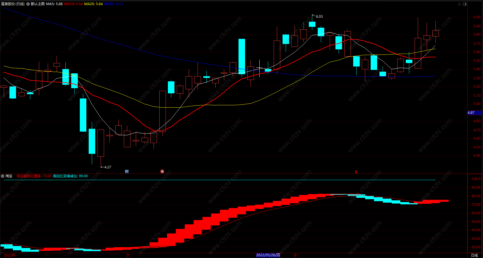财富池指标公式网(www.cfchi.com)提醒您:指标公式是通过数学逻辑角度编写而来,仅是股票分析环节中的一个辅助工具,对股票选股效率和分析便捷上起到一定的作用,股市是具有不确定性和不可预测性的,请正常对待和使用指标公式!