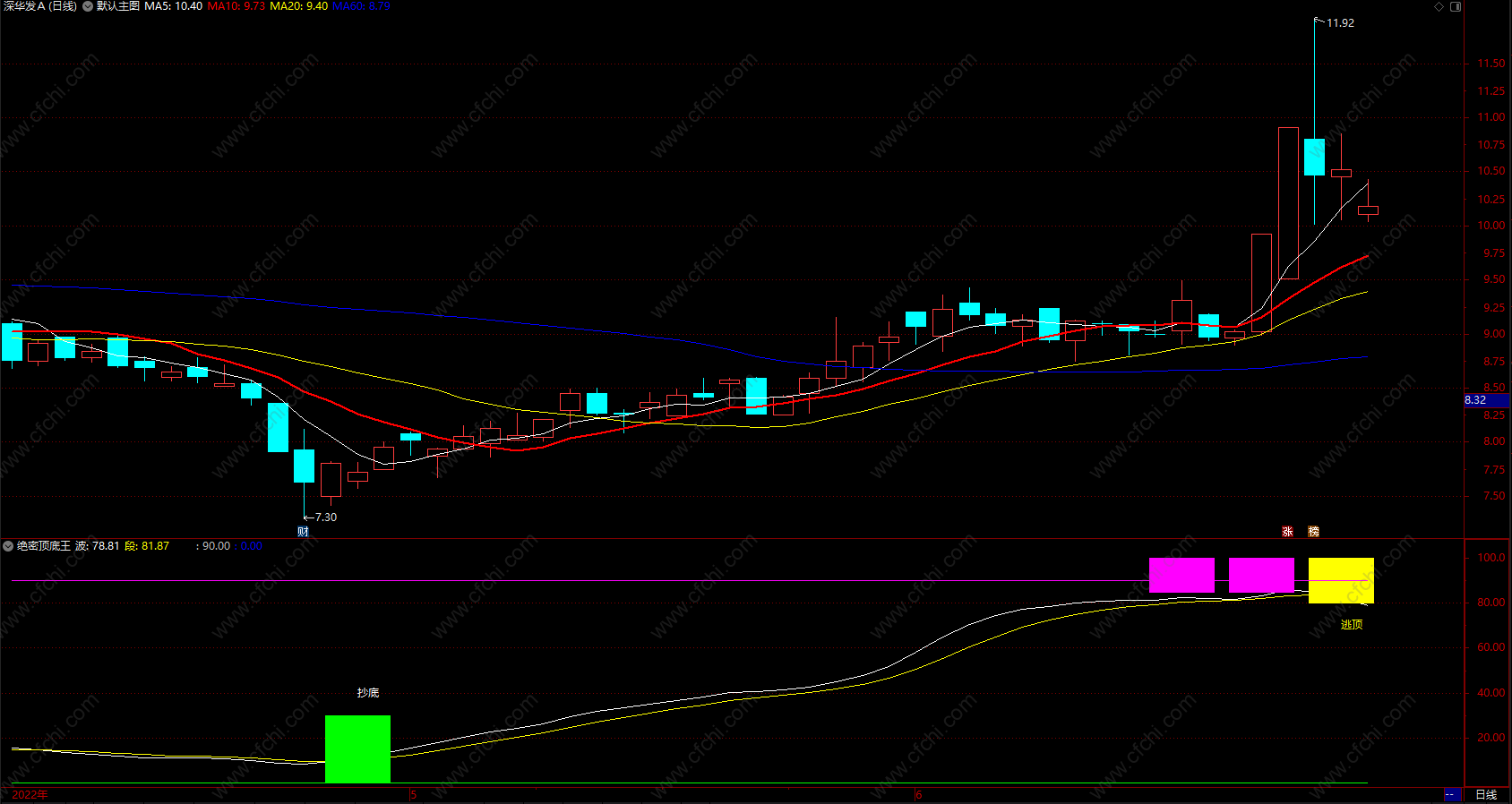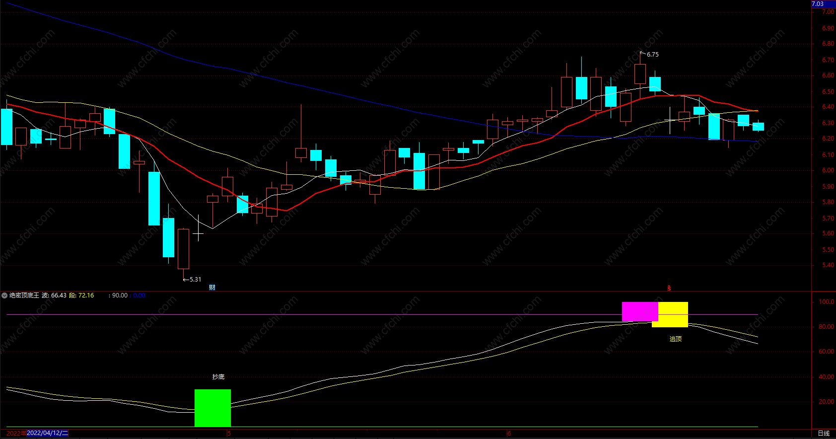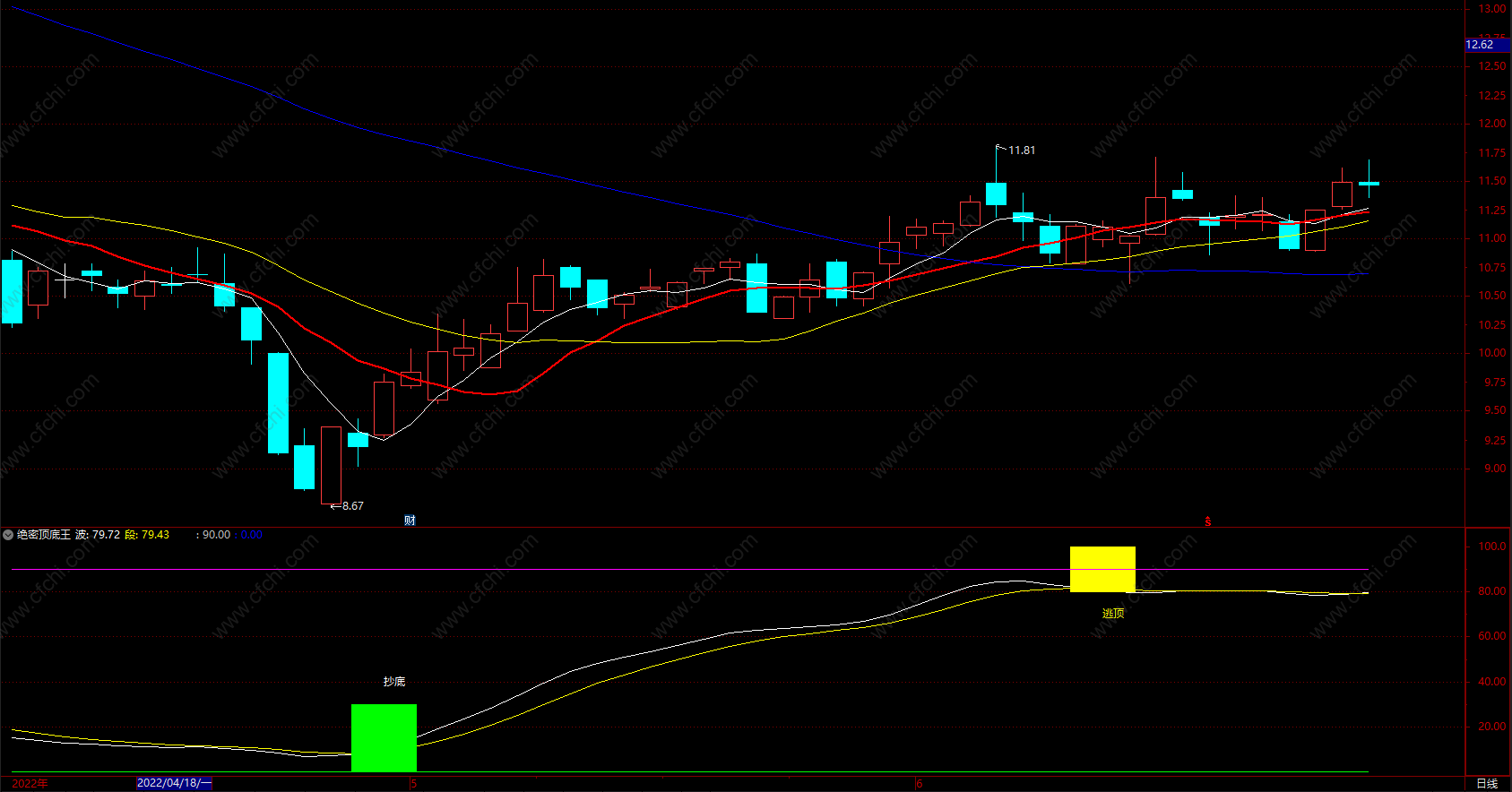 适用于波段操作,不适用于横盘整理的个股。出现绿色柱状线为抄底信号,预示阶段底部,后势上涨概率较大;出现黄色柱状线为逃顶信号,预示阶段顶部,后势下跌概率较大。